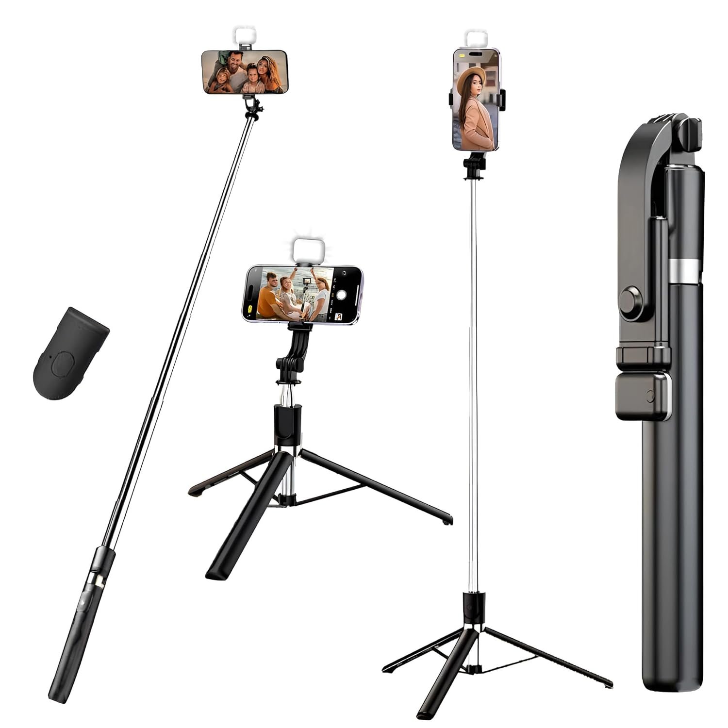 Enjoy the flexibility of our 3-in-1 selfie stick tripod. This Bluetooth selfie stick seamlessly transitions from a selfie stick to tripod and a phone stand, ensuring stability and flexibility for capturing perfect moments