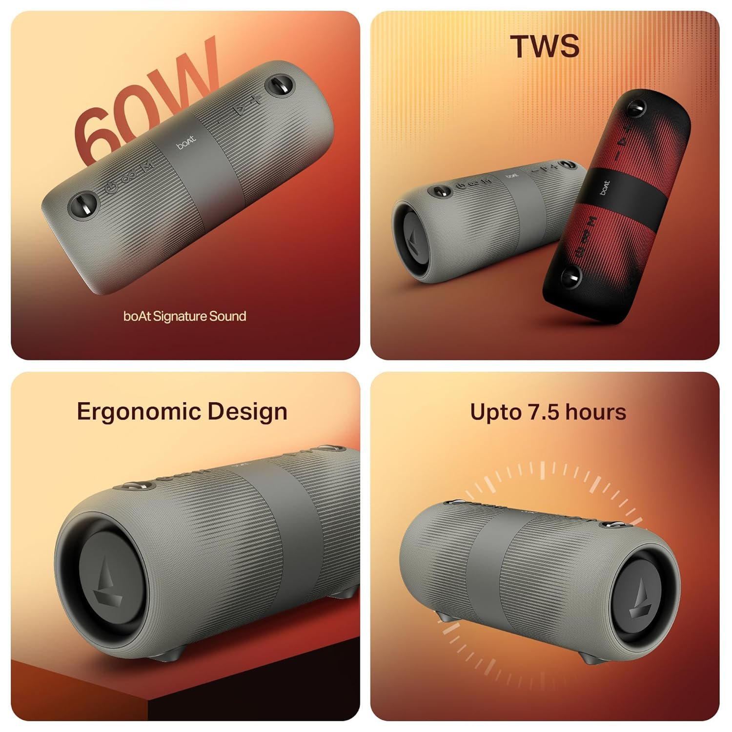 7.5 Hours Playtime: Dive deep into the music or game with high-octane sound effects for long hours courtesy of the extensive playback time. As this speaker delivers up to 7.5 hours of power-packed performance, you can count on uninterrupted enjoyment.