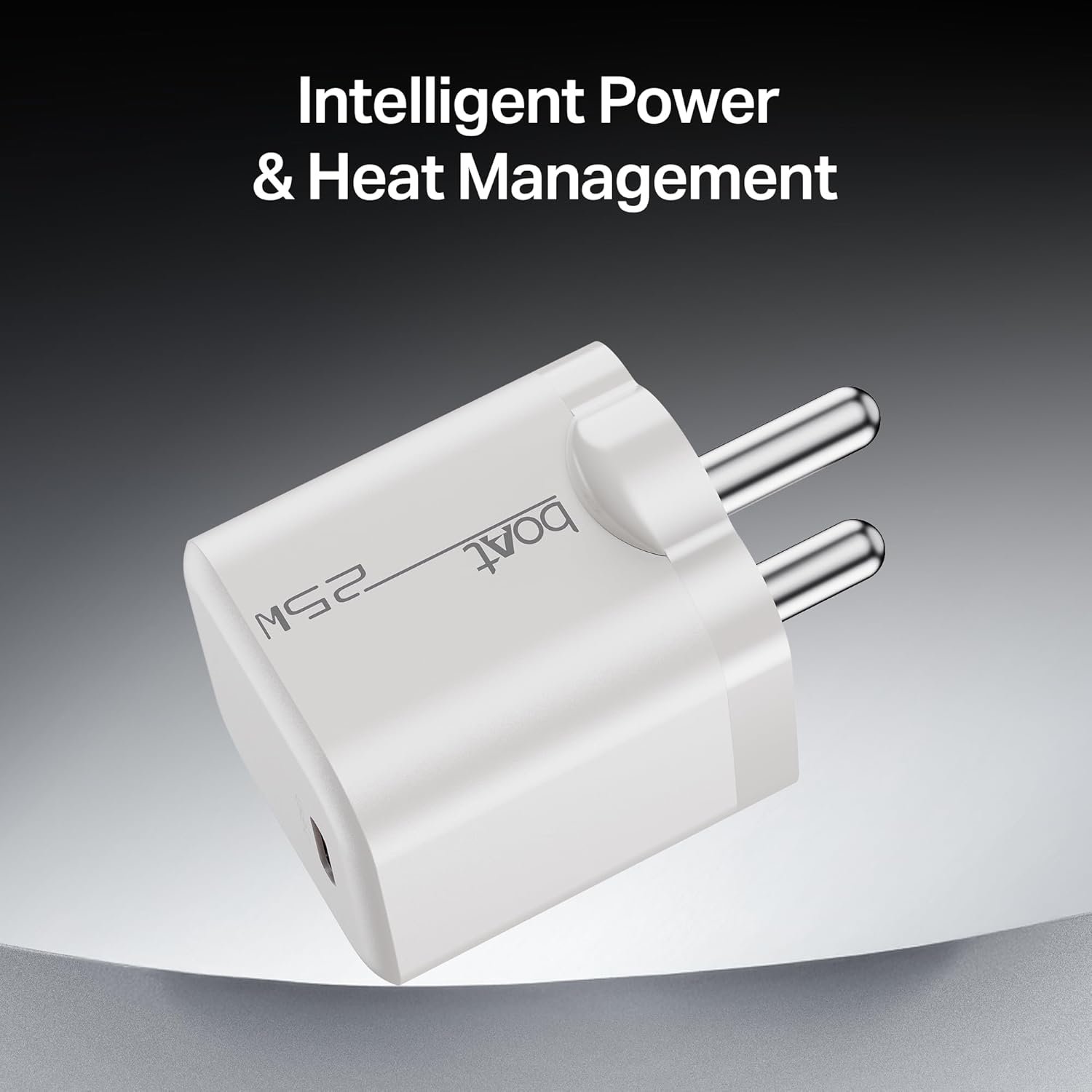 Experience charging that keeps up with your pace. Meet the boAt 25W PD Fast Charger – built to deliver speed, safety, and durability. With 25W fast charging support and advanced protocols like PD and PPS, it ensures efficient power delivery across a wide range of compatible devices. The charger is equipped with auto-detect charging technology that intelligently adjusts the output based on your device’s requirements, thus protecting your battery health. Its ultra-compact and lightweight build ensures easy portability—perfect for both everyday use and travel. Meanwhile, corrosion-resistant and rust-free pins enable stable performance even in challenging humid environments. Smart on the inside, the charger features intelligent power and heat management, efficiently distributing power while preventing overheating. This not only protects your devices but also enhances long-term performance. With Smart IC Protection, it safeguards against overvoltage, overcurrent, overheating, and short circuits—giving you peace of mind every time you plug in. Its scratch- and heat-resistant body offers durability, making it a long-lasting addition to your daily tech setup. From your morning hustle to those unplanned weekend getaways, our 25W PD Charger keeps your devices powered wherever life takes you. Trusted by millions of boAtheads globally, it’s a compact essential for everyday use. For fast, safe, and smart charging— trust the boAt 25W PD Charger.
