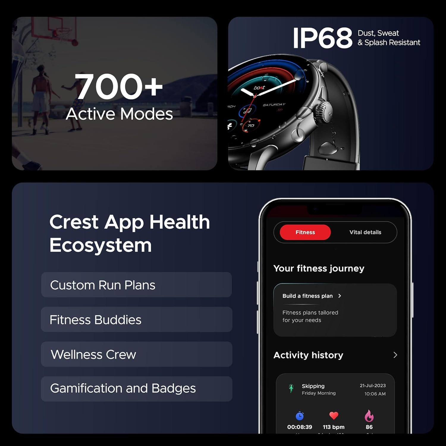 Bought recently boAt Matrix. It is really sleek, fast, battery is good but it has some flaws in perfection and user experience. The features given in the watch is not thoroughly thought through from user angle. They have given Music to enable the songs on the fly, pausing it etc but this feature cannot be enabled when you enable an activity like walking or cycling etc. Unless you close down the activity the music cannot be played. So guys if you want to control your music or want to check your oxygen level while doing an activity, then this is not the right smart device. Also the daily activity data does not get synced in real time with the crest app. if you delete an activity record in the watch it wont get erased in the mobile app and it dont sync as well. Kindly evaluate properly before buying