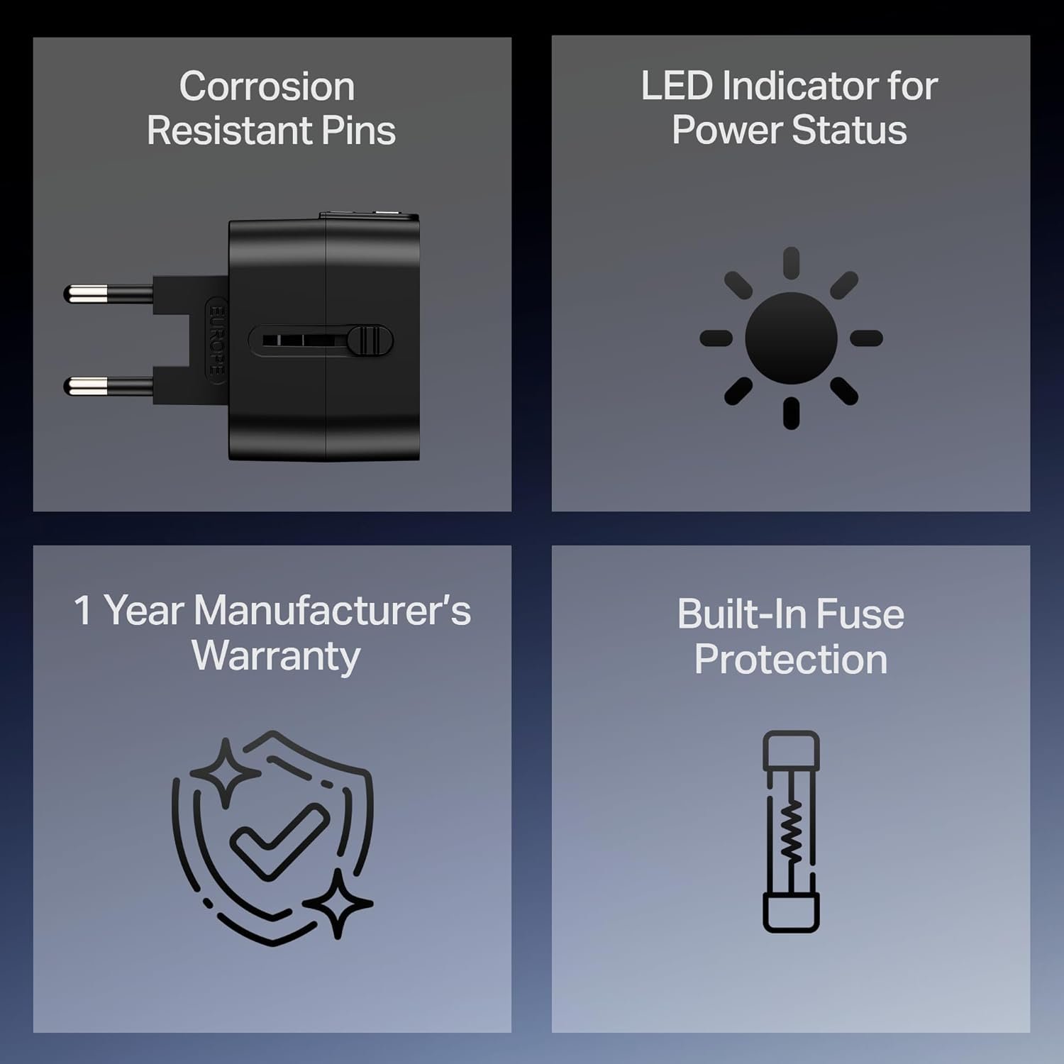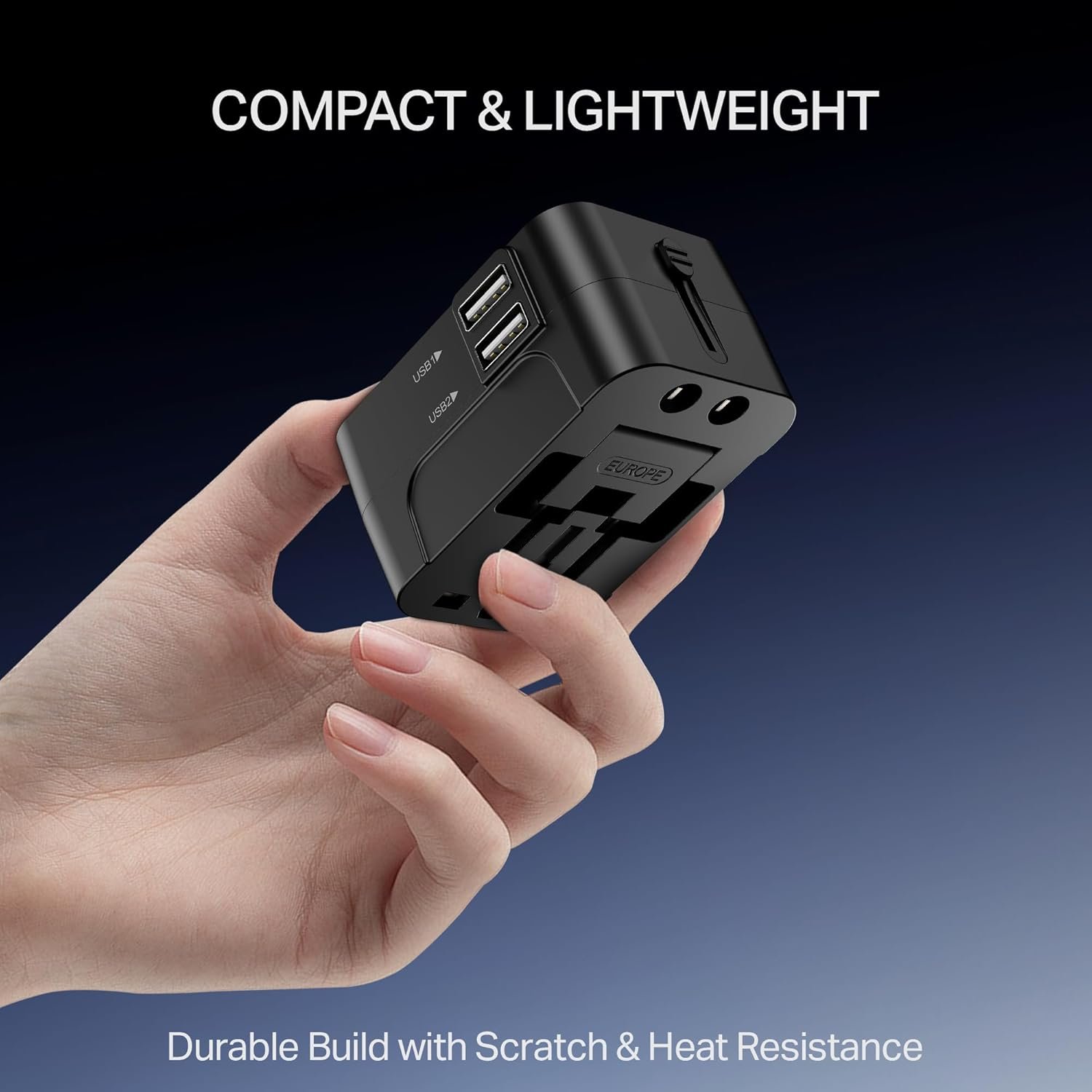 5-in-1 Adapter: A compact powerhouse engineered for versatility—this 5-in-1 adapter eliminates the need for multiple chargers or converters, thus reducing clutter. It is ideal as a smart long-term investment that delivers global charging safety, wherever you go.