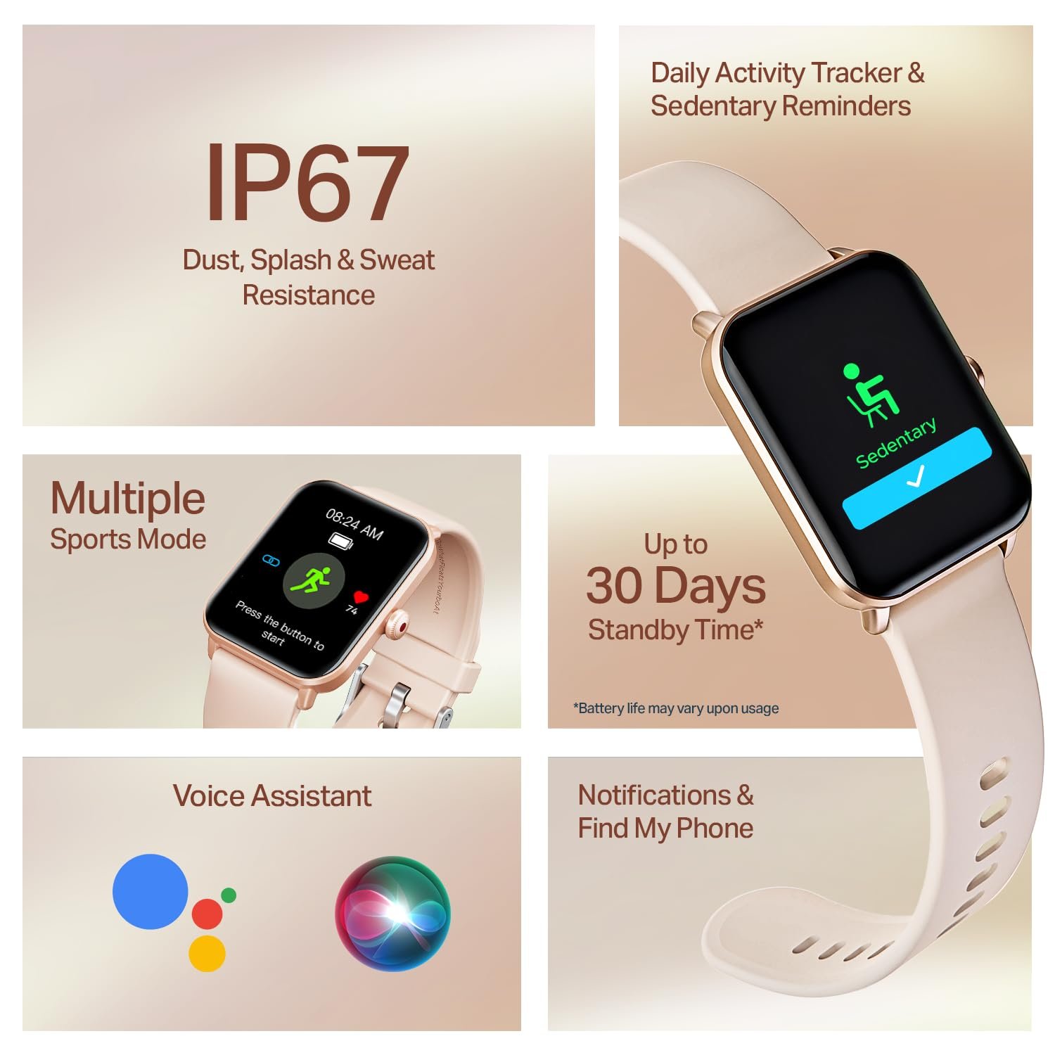 Multiple Sports Modes with IP68: From walking and running to more niche workouts, Wave Call 2 adapts to your lifestyle with multiple sports modes like cycling, yoga, football, weightlifting & more..It is resistant to sweat, dust, and water splashes—making it reliably durable for active and outdoor environments.