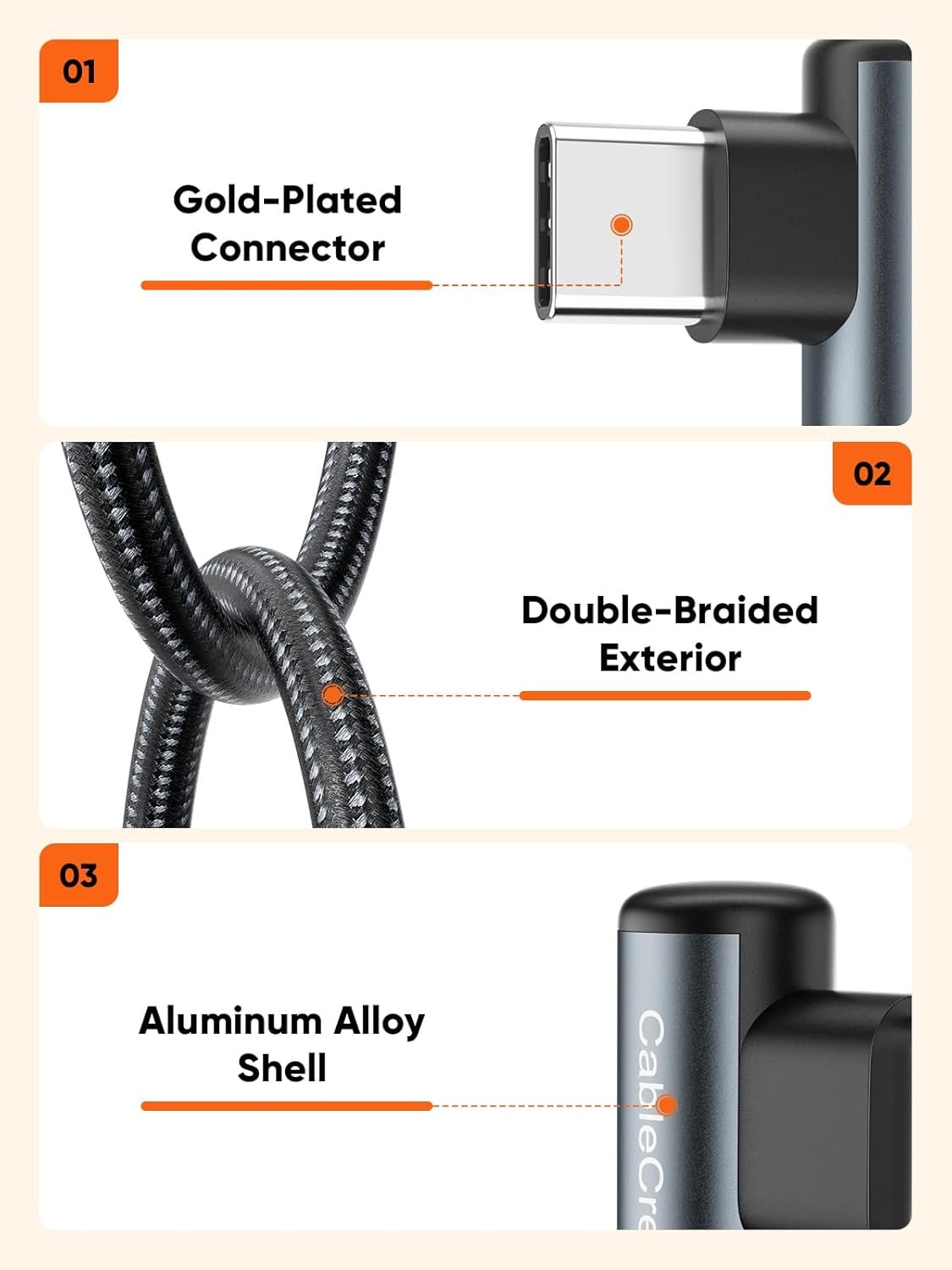 【Braided Jacket & Aluminum Alloy Shell】: Double-braided exterior with a tested 10000+ bend lifespan, premium aluminum alloy shell and gold-plated connector add additional durability and stability to this 2.0 usb c charging cable.