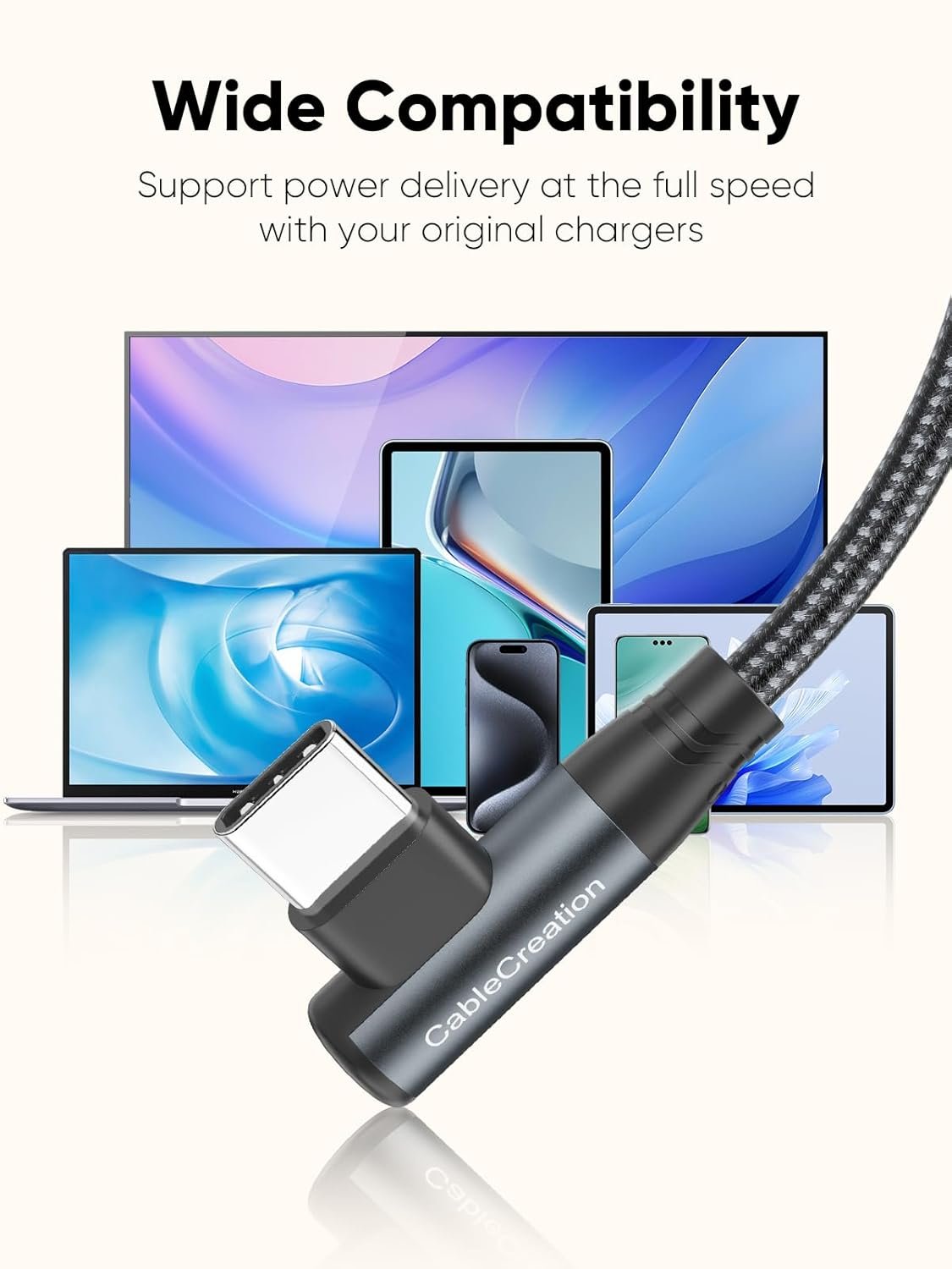 CableCreation Short Right Angle USB C Cable 100W, 1.6FT USB C to USB C Cable Fast Charging USB C Cord Compatible with iPhone 16,15,Galaxy S23 Ultra S22,MacBook, iPad mini 6, iPad Pro 2020