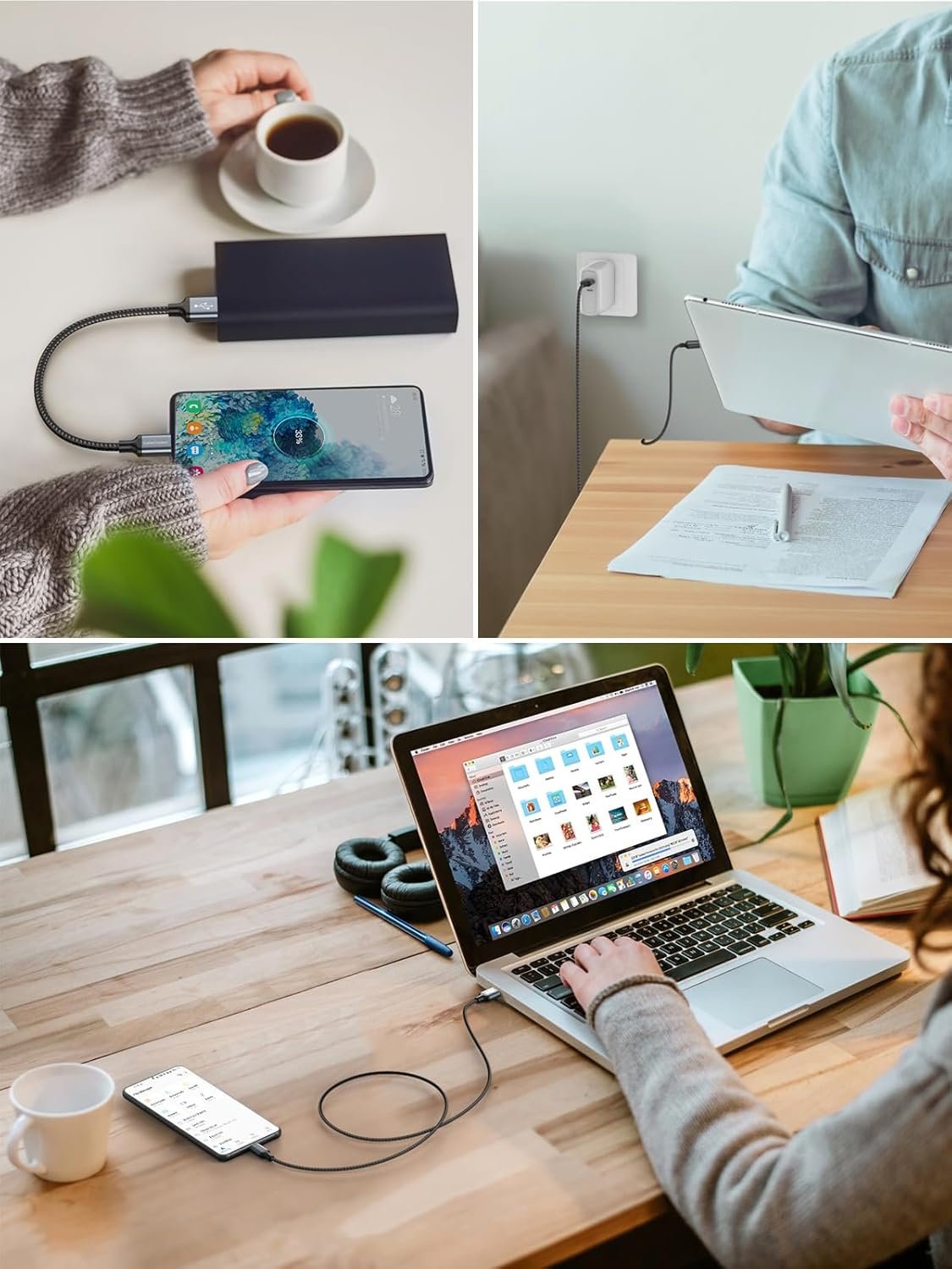 3A Fast Charging & Data Sync: Output power up to 3 Amp, support quick charge(QC), The short charging cable supports USB 2.0 data speed up to 480Mbps (=60MBps). This short usb-c cable can bear 10000+ bending test, a must have for daily use.