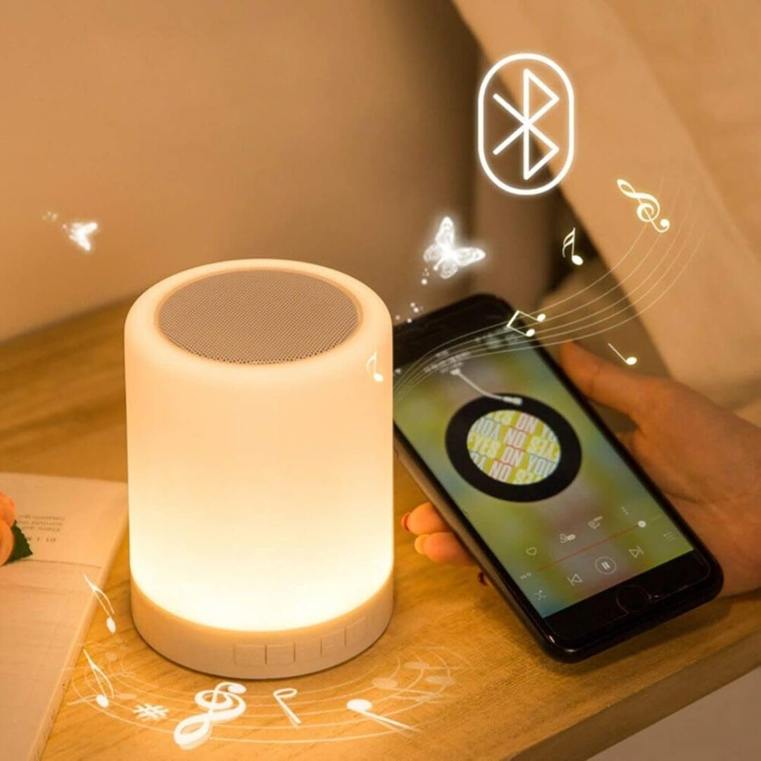 ALL IN ONE SPEAKER – Bluetooth speakers, Touch control LED mood lamp, wireless music player, hands-free speakerphone, table lamp, night light for children