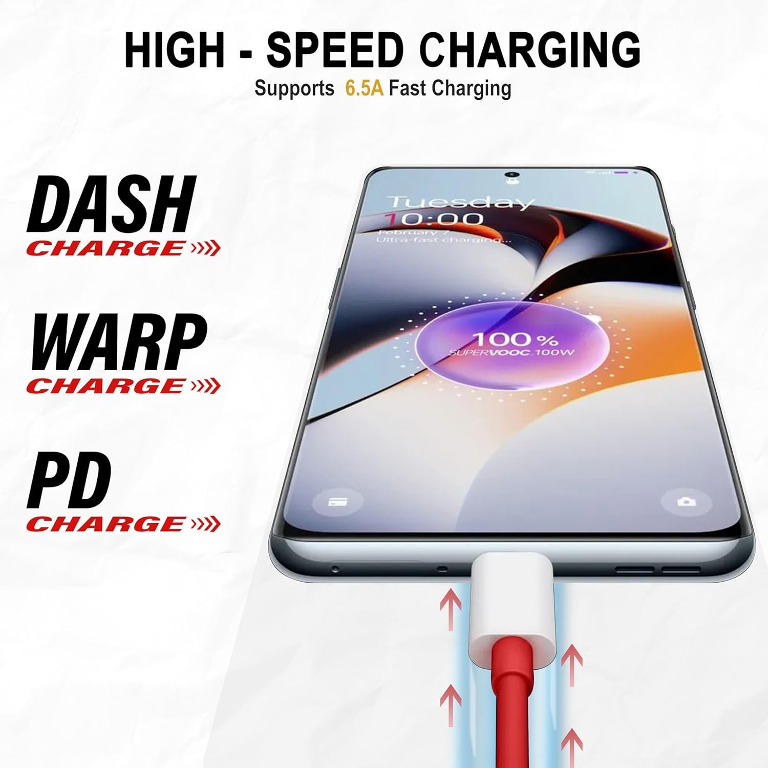 This cable is solid! It supports 65W fast charging just like the original OnePlus cable—charges the phone super quick with no heating issues. The build quality is sturdy and the cable is thick and durable. Great value for money, especially as a backup or replacement.