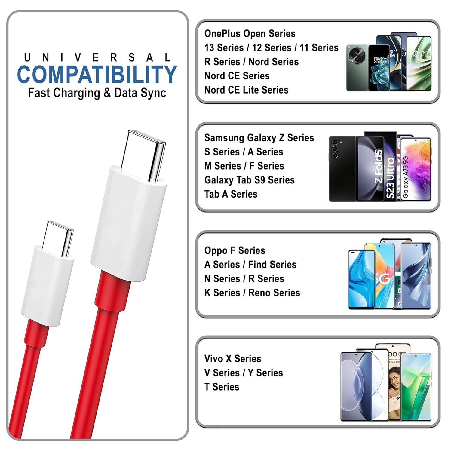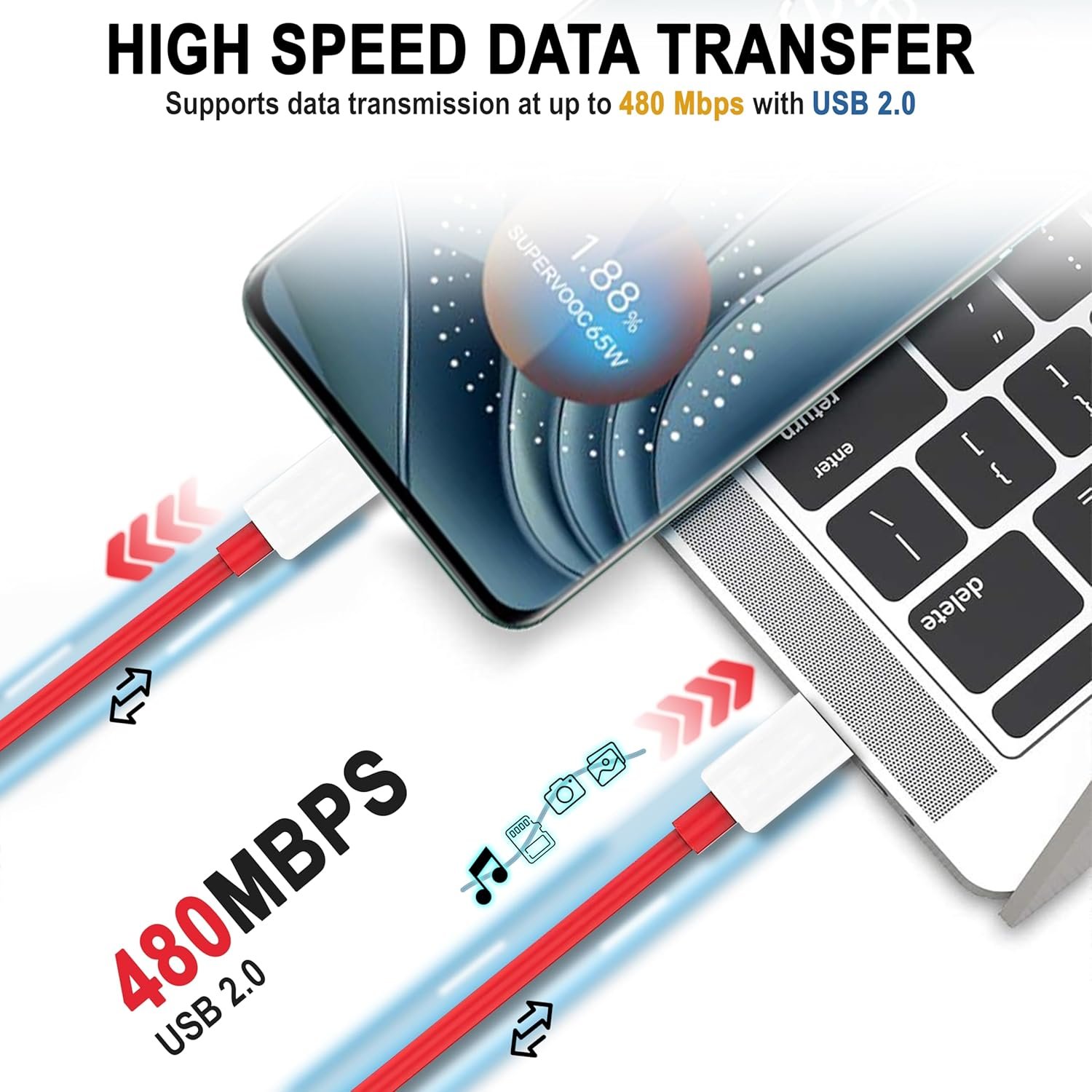 CEDO 65W OnePlus Dash Warp Charge Cable | 6.5A USB Type C to C PD Data Sync Fast Charging Cable Compatible with One Plus 8T / 9 / 9R / 9 Pro / 9RT / 10R / Nord & for All Type C Devices 1 Meter (Red)
