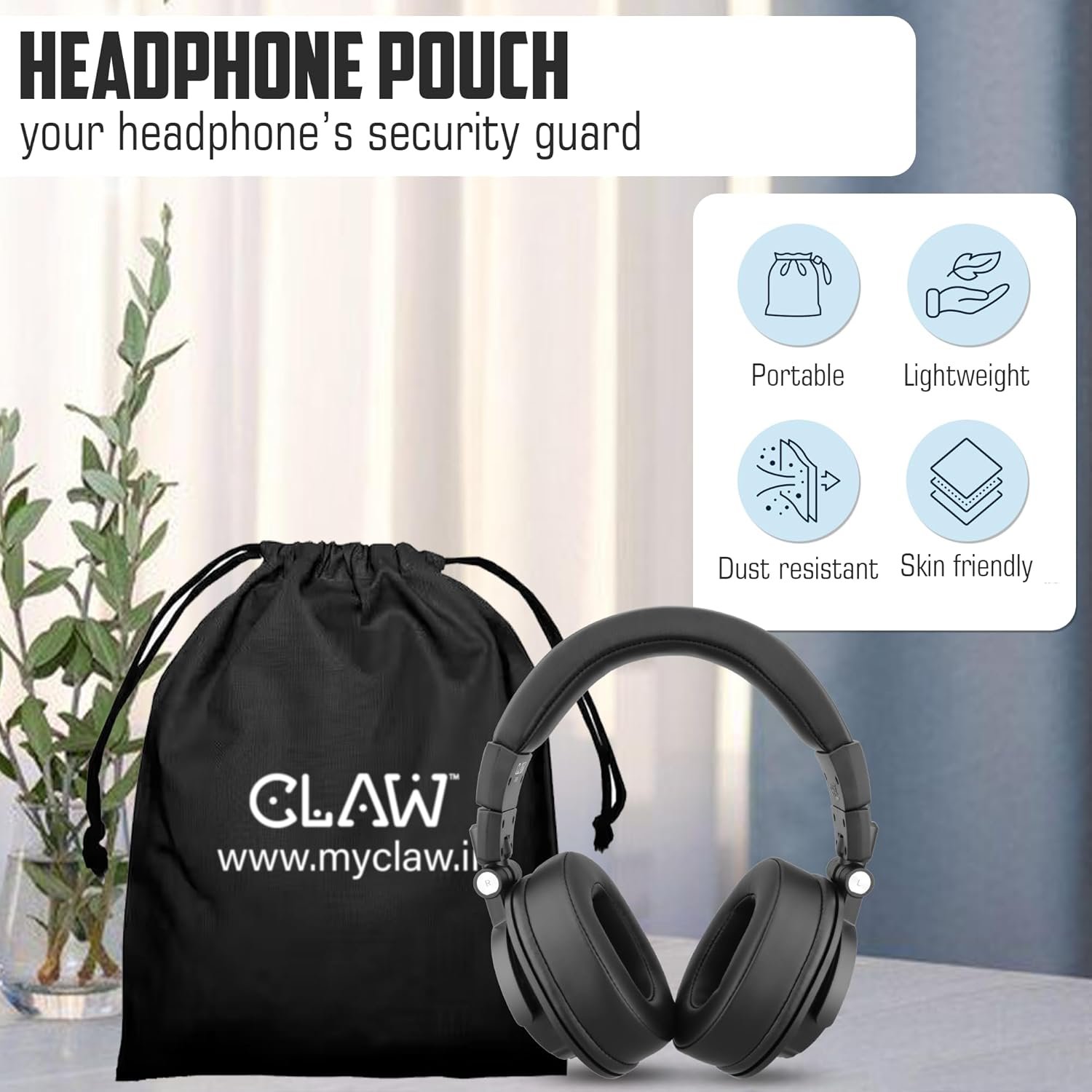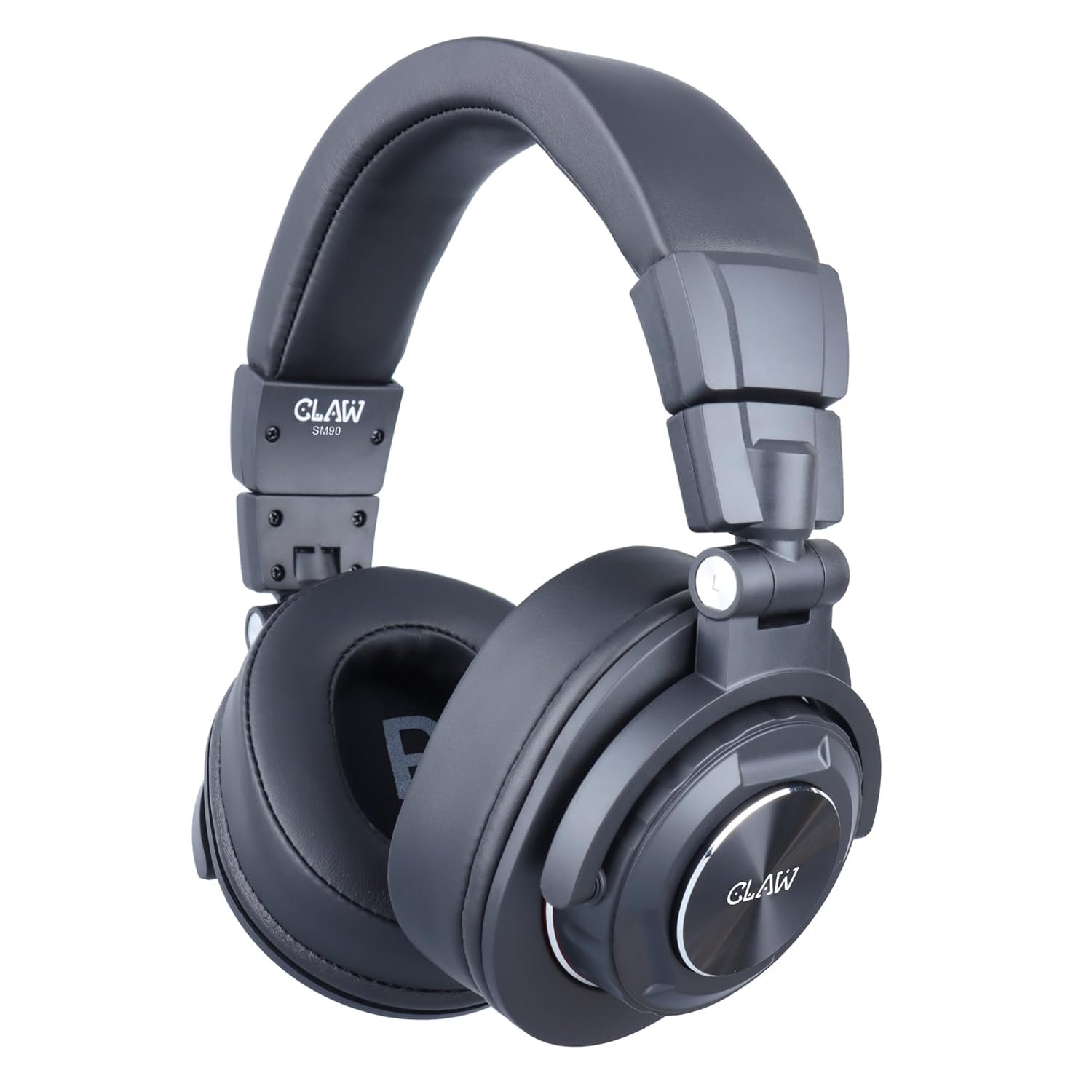CLAW SM90 Studio Monitoring DJ Headphones, Wired Foldable Over-Ear with 50mm Neodymium Drivers, 4m Coiled Cable, 3.5mm to 6.35mm Adapter & Carrying Pouch – Ideal for Mixing, Recording & Gaming| Black