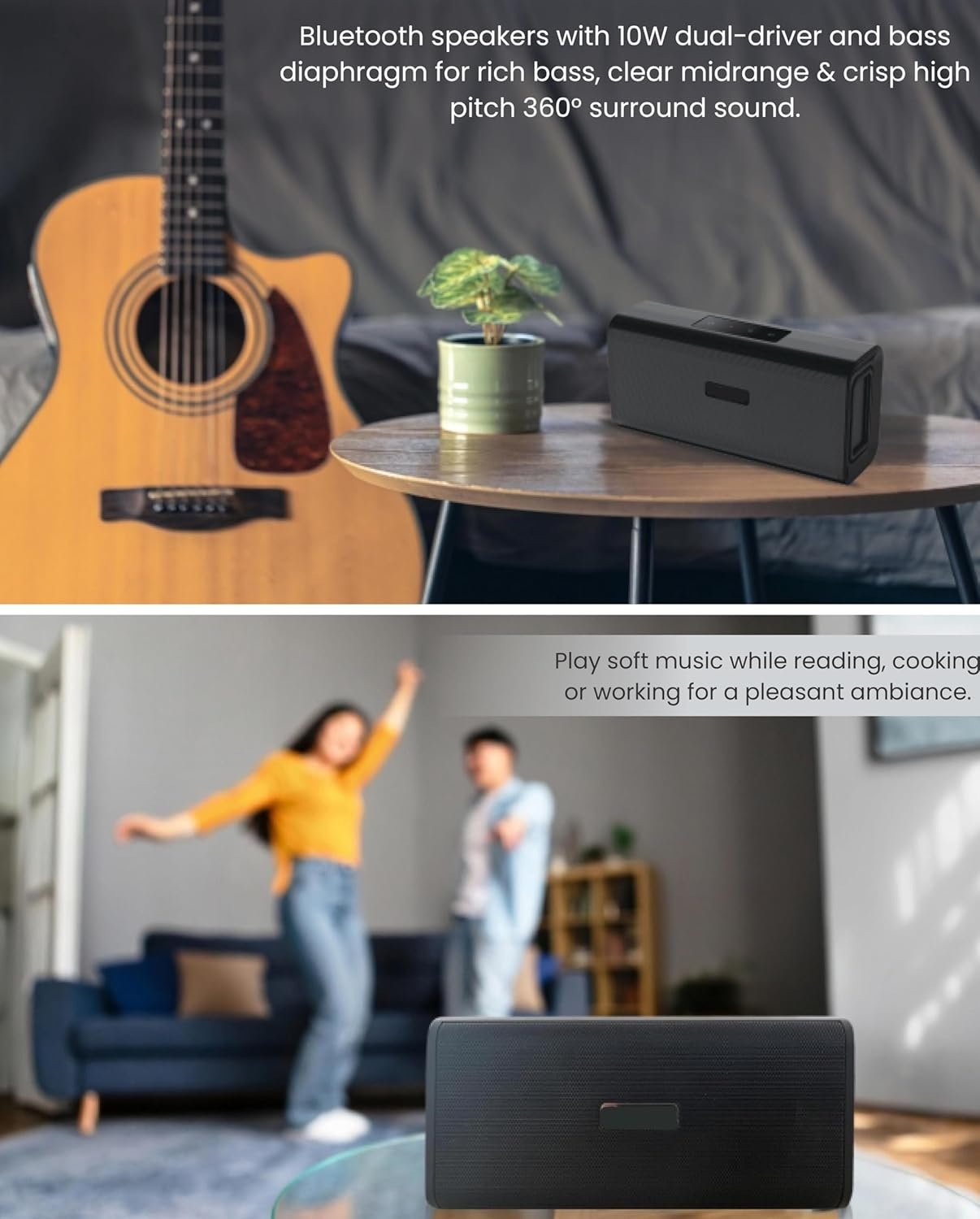 【Superior Sound Quality and Deep Bass】: Bluetooth speakers with 10W dual-driver and bass diaphragm for rich bass, clear midrange & crisp high pitch 360° surround sound.