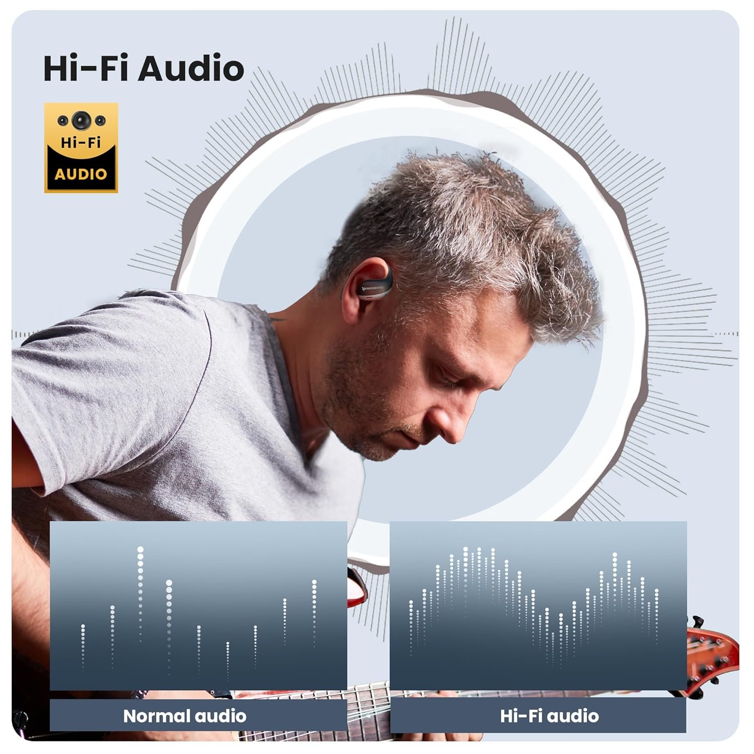 đ”SPATIAL AUDIO EARBUDS with HEAD TRACKING: Experience Indiaâs 1st personalized 360 spatial audio for theater like sound with Crossbeats Arcbuds Open Ear Earbuds (OWS). With its patented TruReverb:tm: technology, these open-ear Bluetooth 5.4 wireless earphones deliver an unparalleled listening experience. From deep, rich bass to accurate mids and crisp, clean highs, youâll hear every note with our powerful 14.2mm Titanium drivers. These head tracking wireless earbuds will deliver an unparalleled immersive audio changing the way Music is heard, giving a multidimensional effect with every beat as you move.