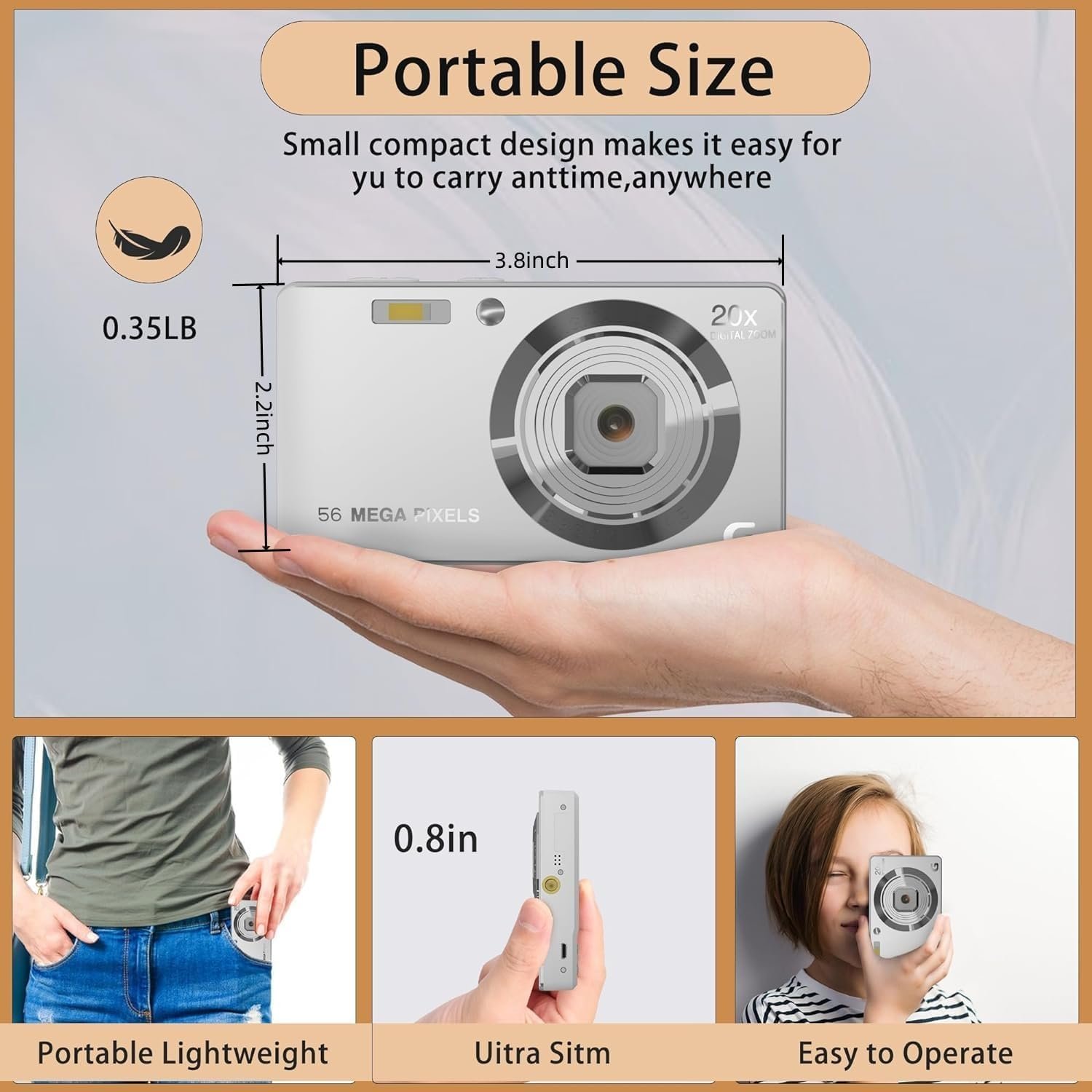 Lightweight and Travel-Friendly Design: This portable camera is designed for travelers, compact enough to fit into your pocket or bag, making it easy to carry on adventures and ensuring you never miss a photo opportunity.
