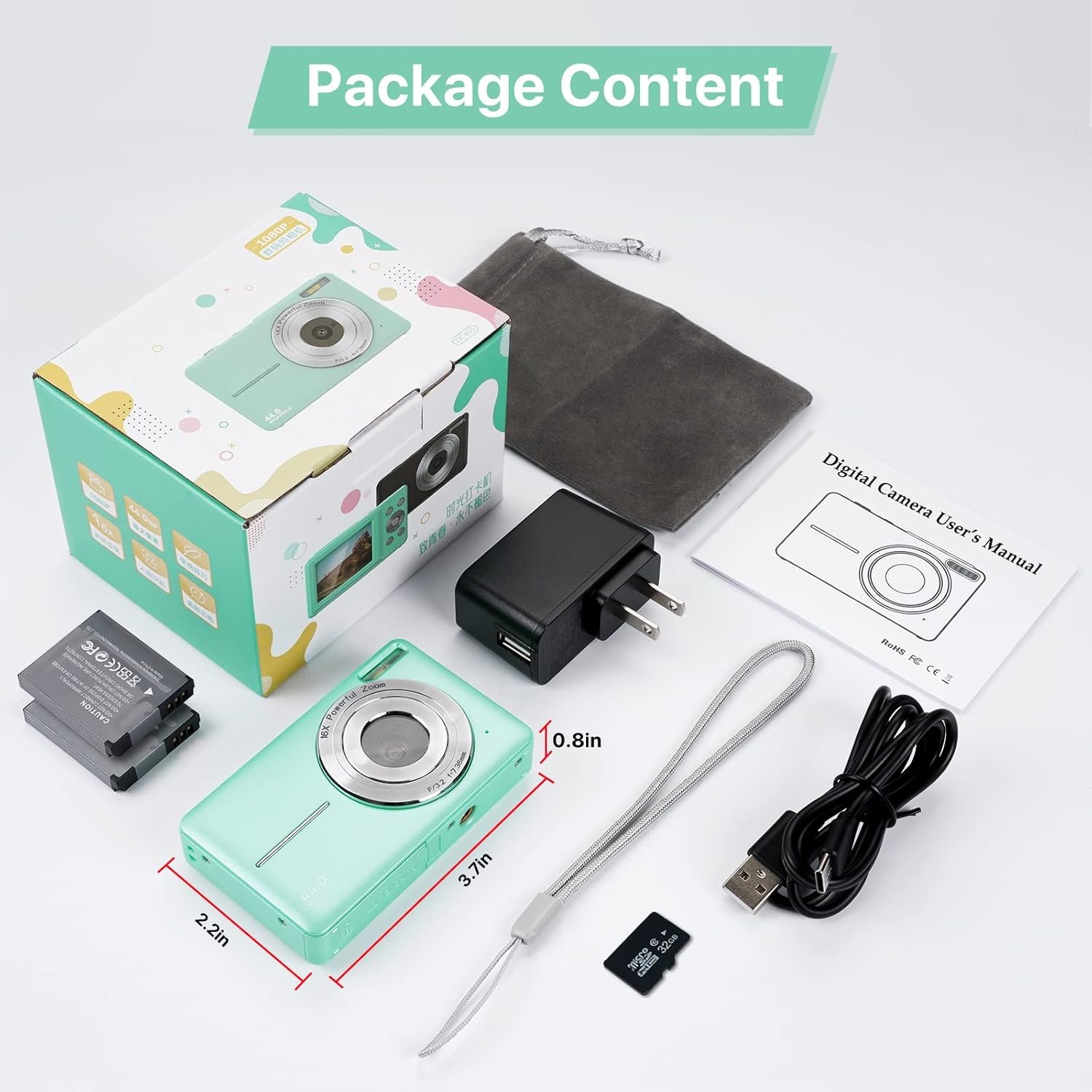 [Vlogging Record & Webcam] Equipped with video mode and a built-in microphone, you can record more stable and smooth videos. This digital camera can also be used as a webcam, so you can make video calls or live stream and share your life on social media. The included Type-C cable and 32GB TF Card support the transfer of photos and videos from the camera to your computer for timely photo collection and storage.