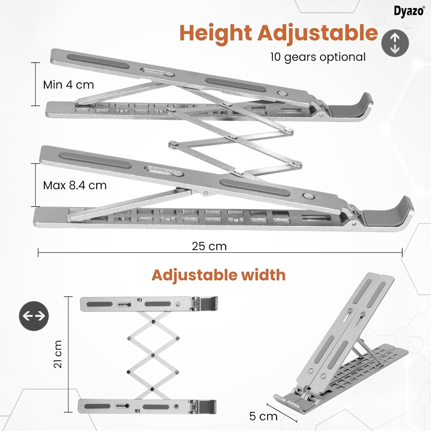 Dyazo 10 Angle Aluminum Laptop Stand Portable & Fully Foldable Raiser Compatible for Lenovo, Dell, MacBook & All Other Notebooks 10 “-15 .6 Inch (Silver)
