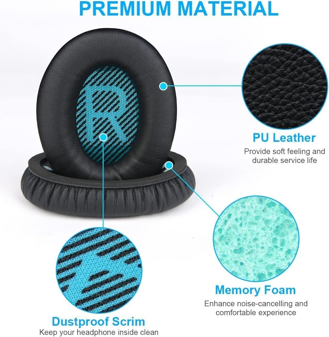 Earpad Cushion Compatible with Bose QuietComfort 15 QC15 QC25 QC2 QC35/Ae2 Ae2i Ae2w/SoundTrue SoundLink Ear Series Protein Leather High-Density Noise Cancelling Soft Memory Foam Ear Cushion