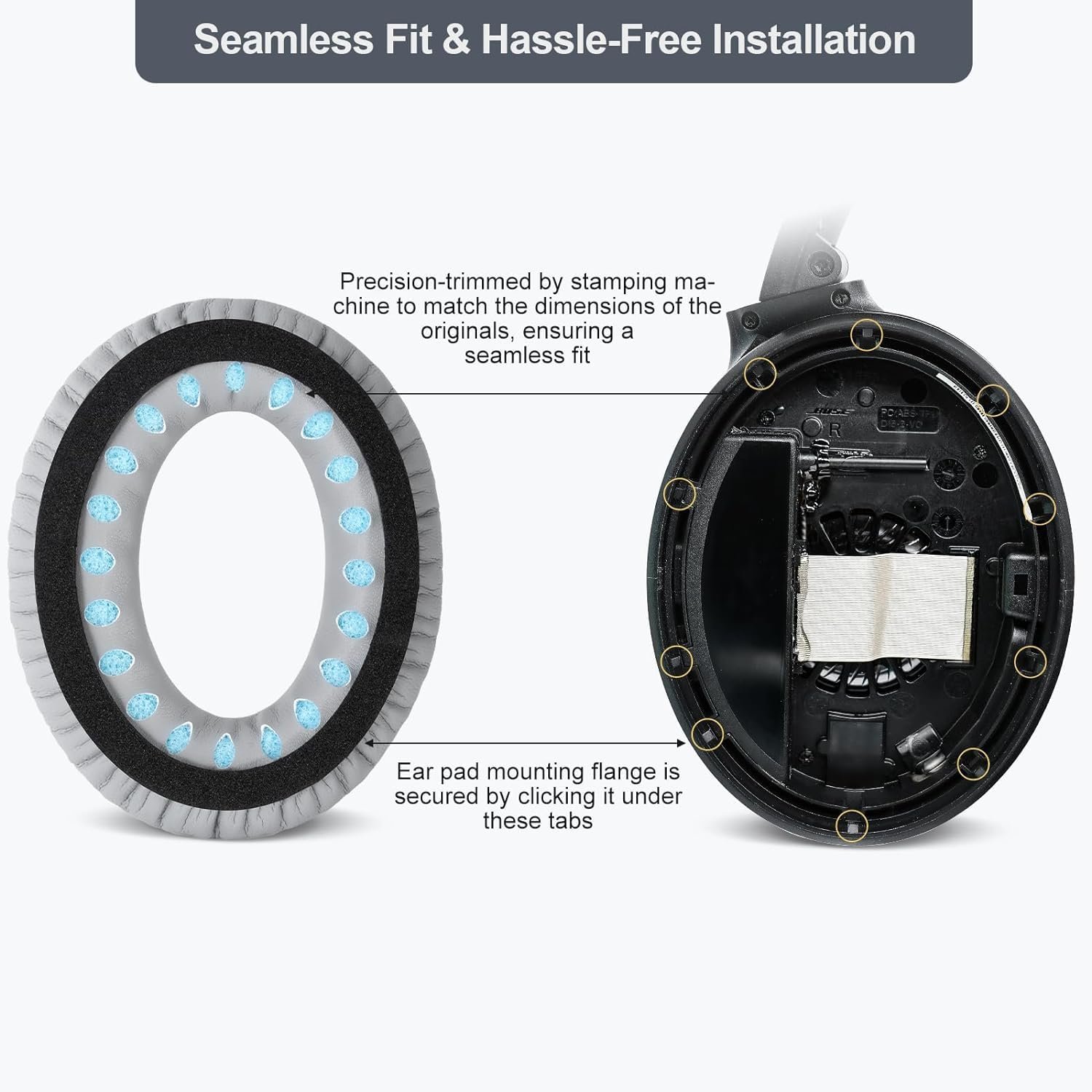 Easy to Install: No special tools are needed with a easy installation. Firstly remove the broken earpads, then put new earpads inside the headphone ear cups, snap the earpads easily into place. This ear pads is not only easy to install, but also forms an important acoustic seal, which brings you more quietness.