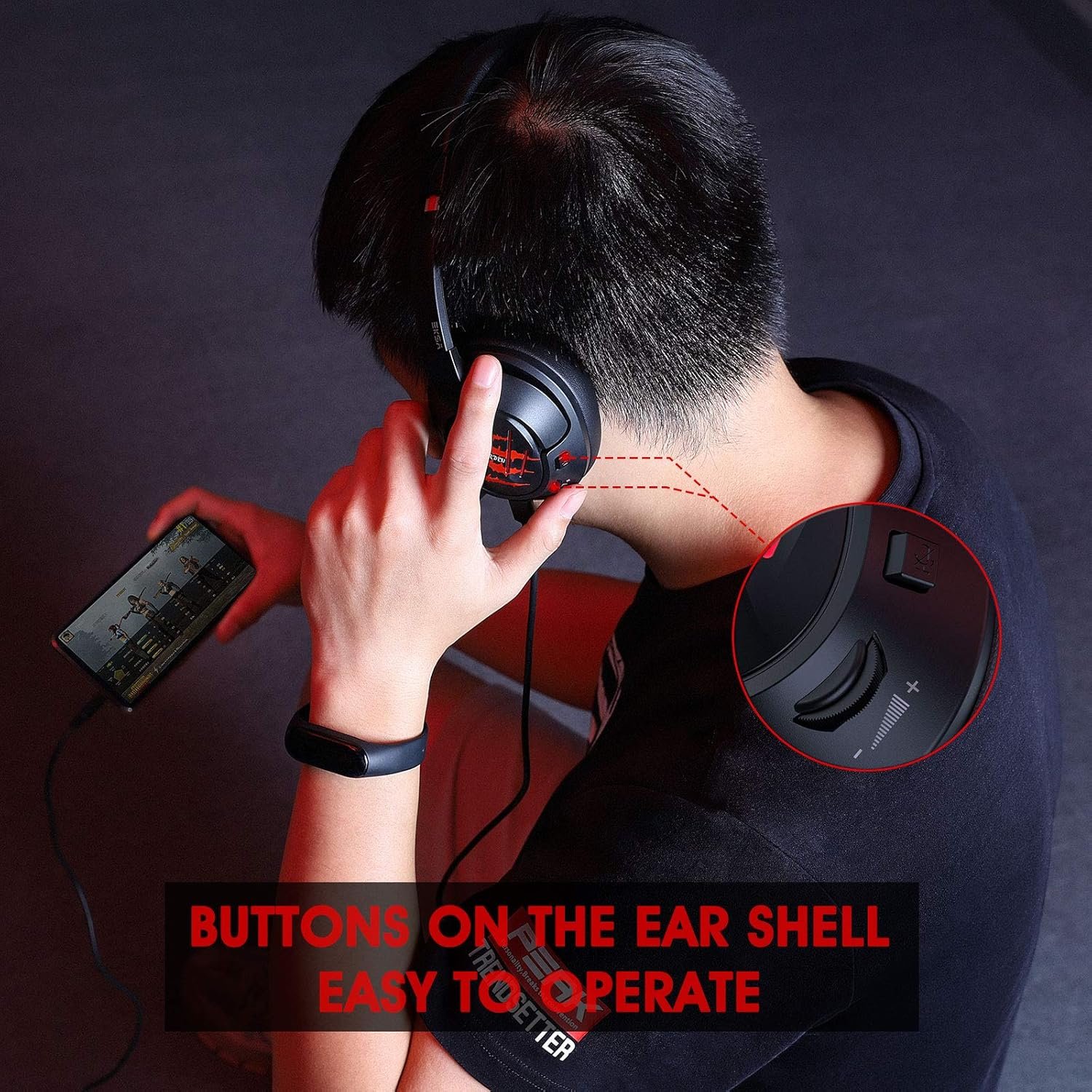 【Cool LED light】Delicate red RGB lights are designed on the earmuffs to highlight the atmosphere of the game. It is different from traditional game headsets, its exquisite and stylish appearance makes your games not limited to indoors. You can use this headphones in cafes, offices, subways, etc. This gaming headphones allow you to enjoy games and music anytime, anywhere.