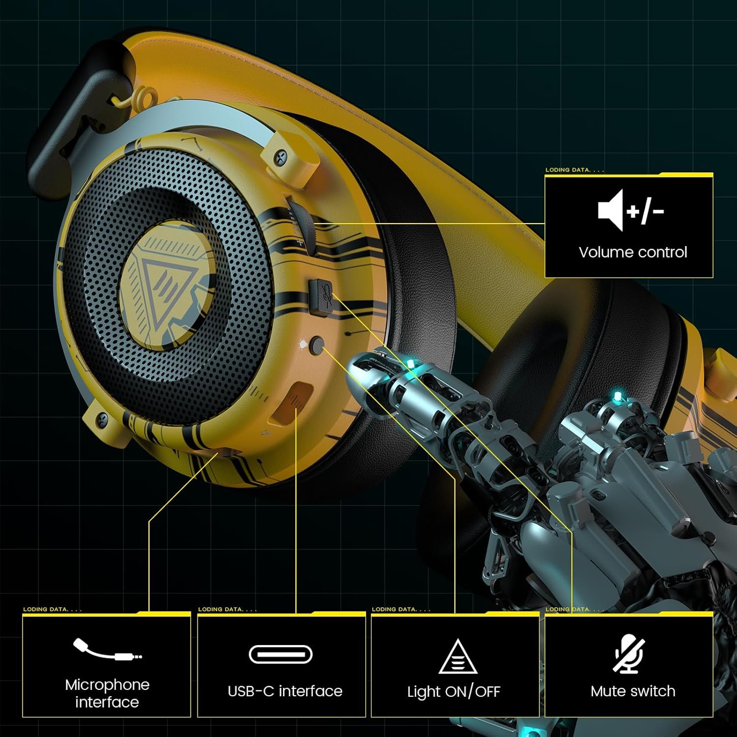 EKSA E900 Pro Yellow Gaming Wired Over Ear Headphones with Virtual 7.1 Surround Sound, Noise Cancelling with Mic & Led, Compatible with PC, PS4, PS5, Xbox One (Yellow)…