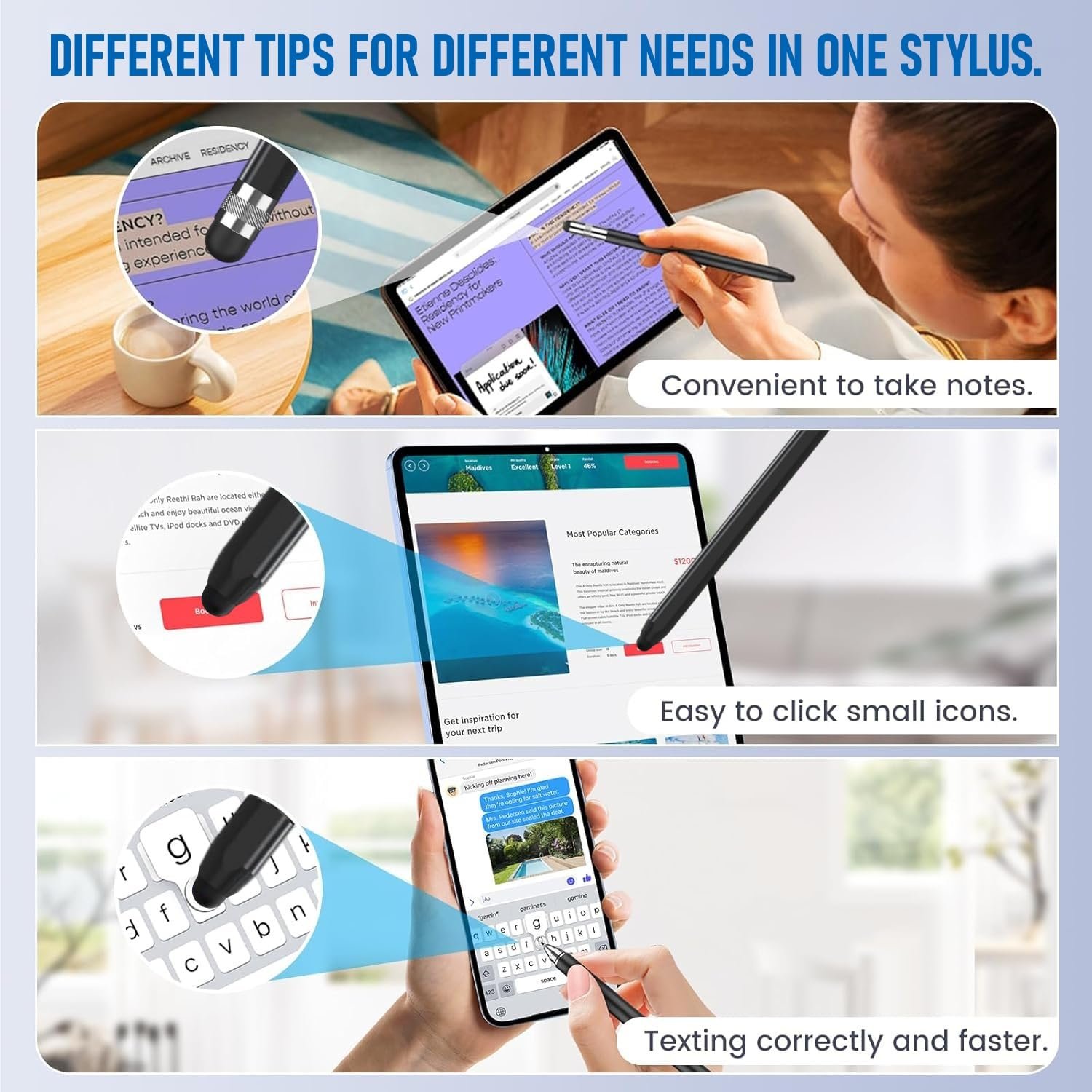 Universal Compatibility: The Elfora 2-in-1 Tablet Stylus Pen works seamlessly with all touch screen devices, including iOS, Android, and Windows, making it versatile for various applications.