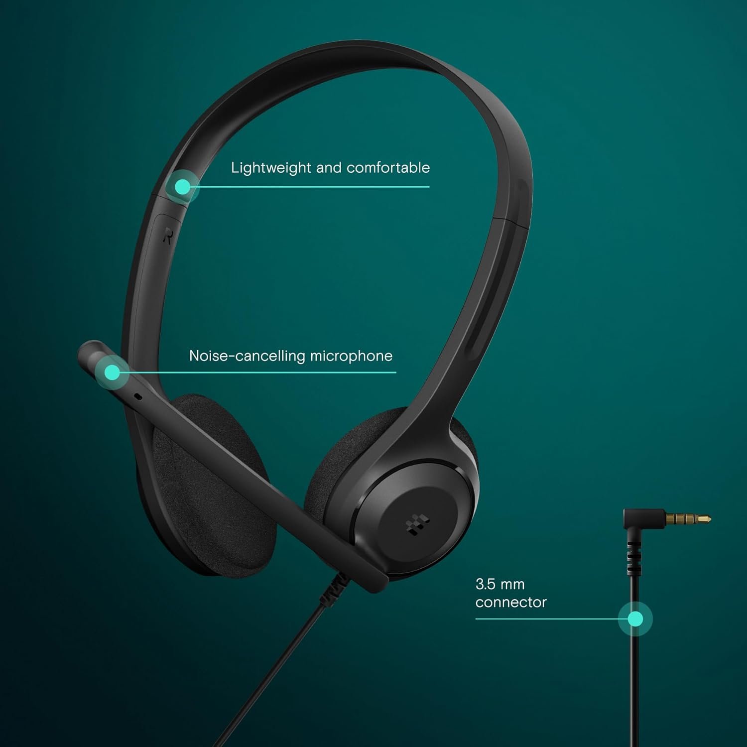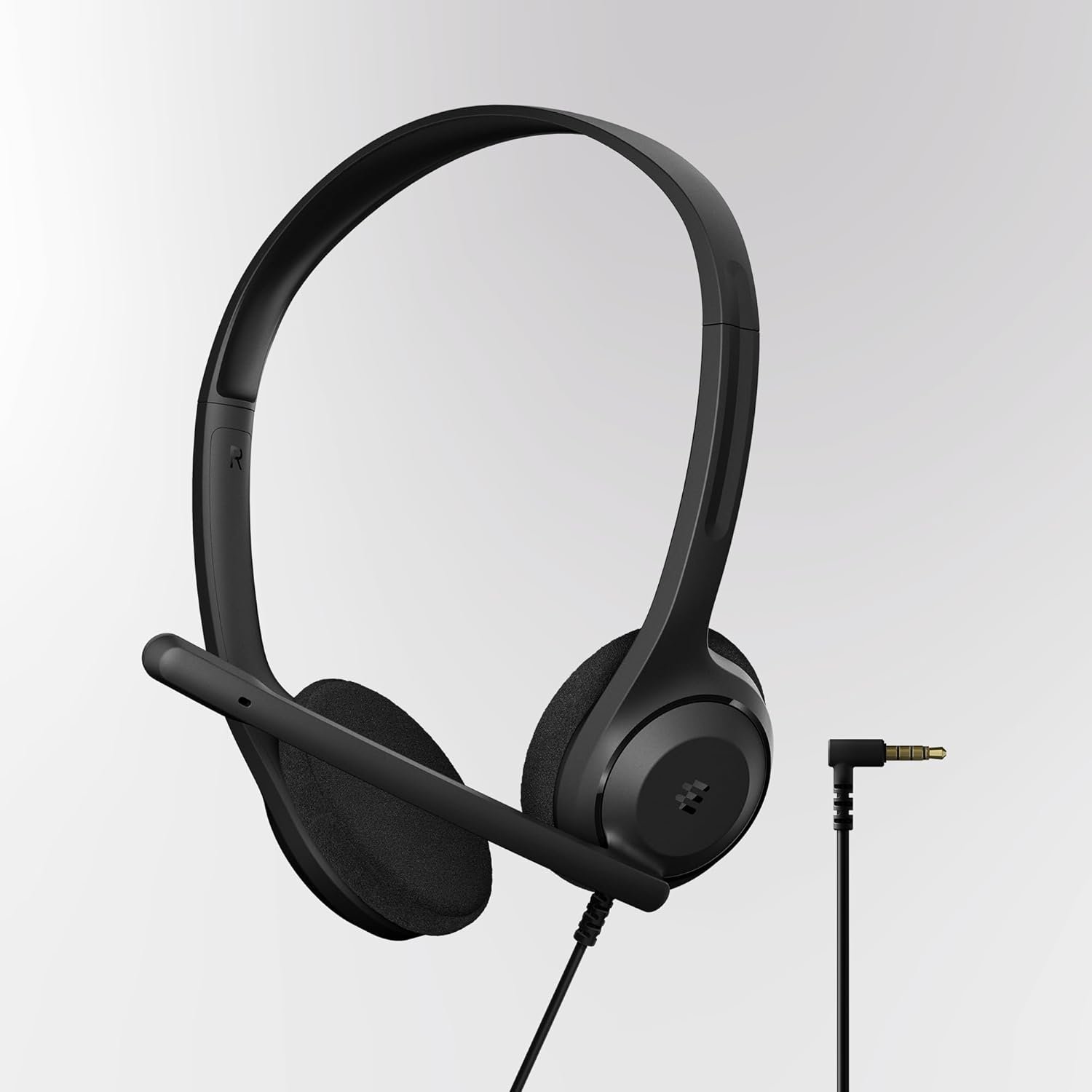 The EPOS C1 with 3.5mm jack is an upgraded on-ear headset for hybrid workers and casual users, delivering clear voice pickup, excellent audio quality, and lightweight comfort. Ideal for PC, mobile, or tablet use with no setup required. Features a noise-canceling microphone, adjustable headband, and eco-conscious packaging.