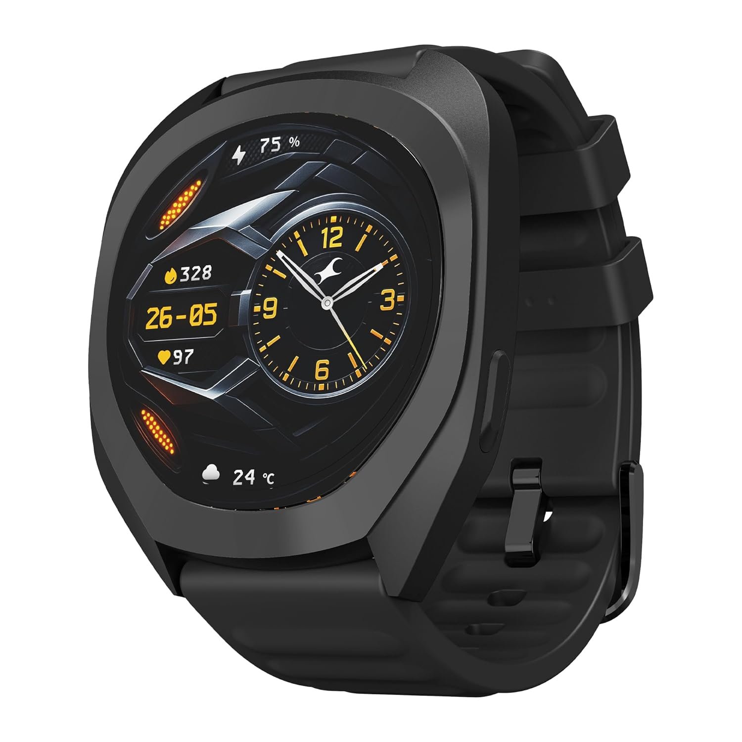 Fastrack Cosmix 1.32″ AMOLED Display Metal Case Smart Watch with Heart Rate Monitor,AI Watchface & Chat,Push Button Interactions,BT Calling,IP68 Water Resistant Upto 5 Days Battery Life – Onyx Black