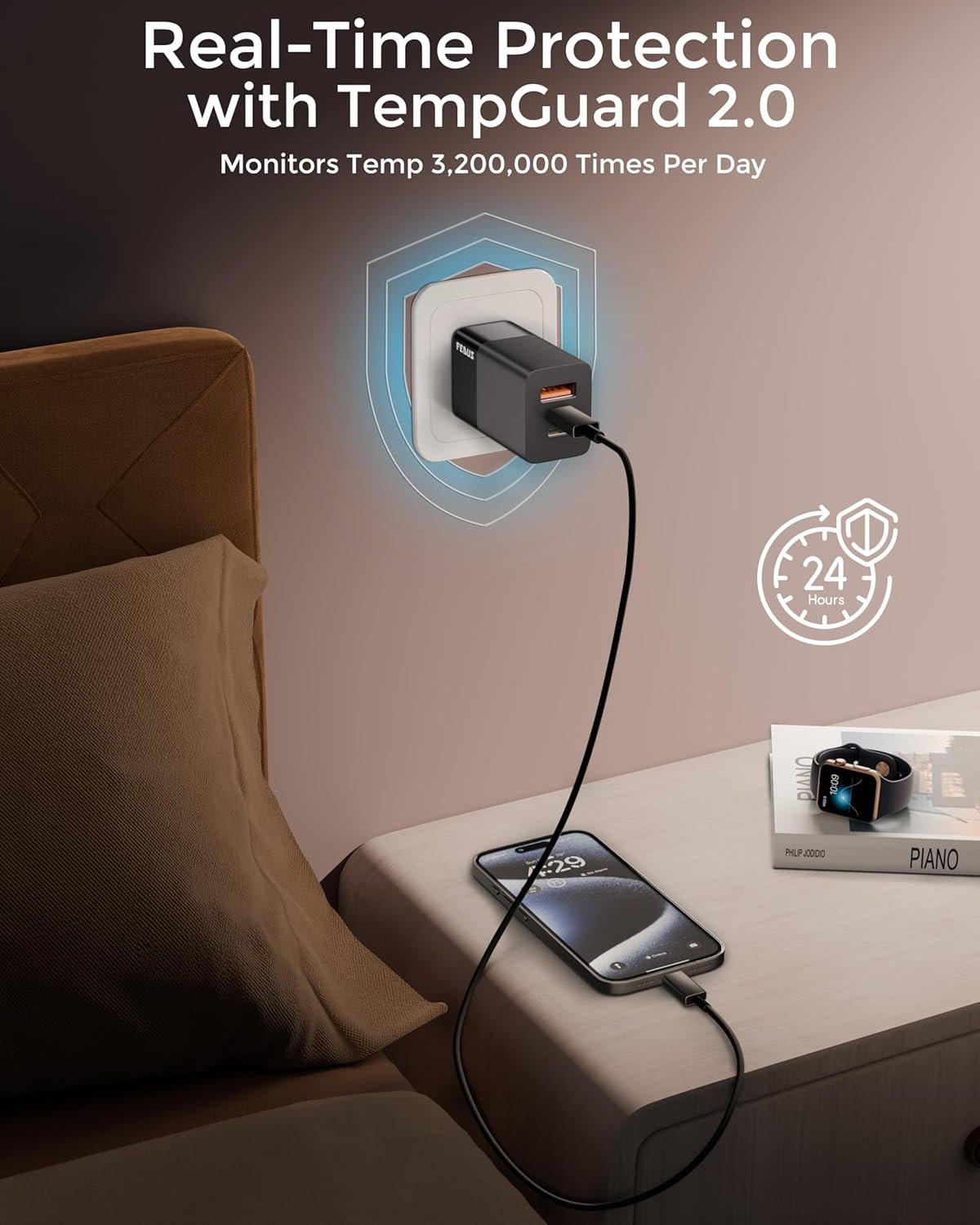 ▶SMALL & PORTABLE DESIGN: FEDUS USB C wall charger only needs one plug to charge your multiple electronic devices without taking several bulky chargers during the journey. The USB charging adaptor with an ultra-compact, round-edge design, and foldable prongs for extra portability and to avoid scratching other objects in your bag. ideal for easy storage, especially when moving. Experience the convenience of a compact and portable charging solution no matter where you are