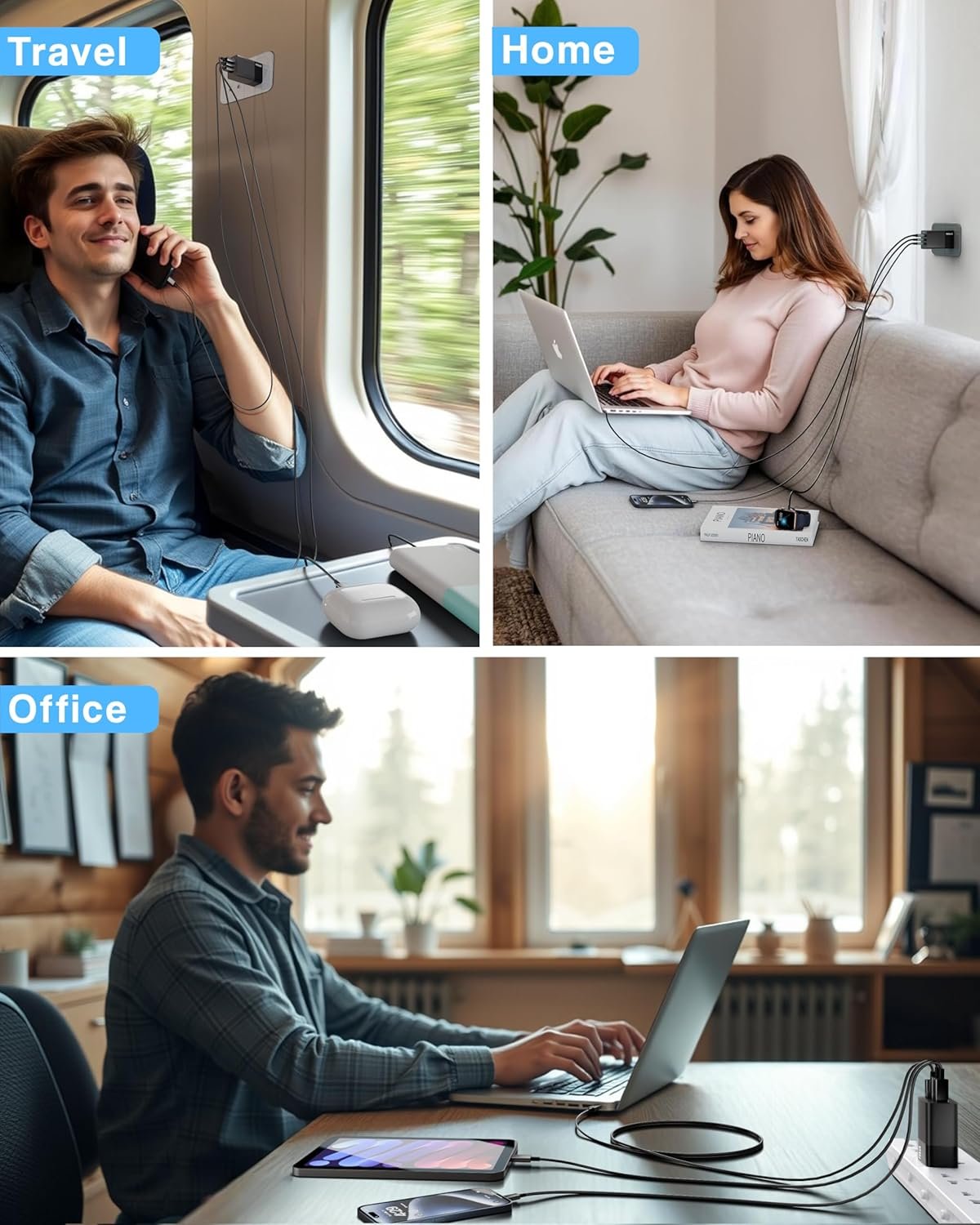 ▶EFFICIENT CHARGING & WIDE COMPATIBILITY: Designed to work perfectly with a wide range of electronic devices, this 3-Port 100 watt fast charger can charge many devices like phones, Laptops, Tablet, Smart Watch ( MacBook, iPad Pro, iPhone 16/15 Pro/14/13, Galaxy S25, S24 Ultra, Flip/Fol, Google Pixel, Steam Deck, Dell XPS, and many more, (USB-C CABLE NOT INCLUDED). Please keep in mind that you should also have a data cable according to the power of your device.