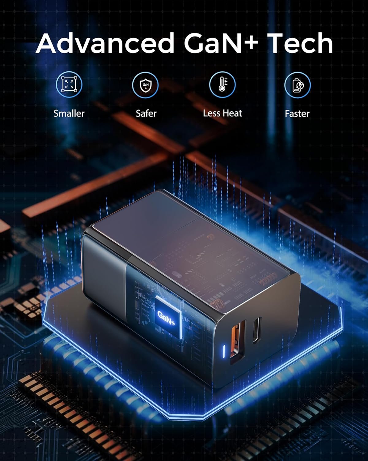 ▶LATEST GAN III CHIP TECHNOLOGY: Enjoy peace of mind charging with 65-watt charger type c GaNSense Technology, built-in multi-protection system, and premium microchips. With higher energy efficiency and upgraded heat dissipation, Gallium Nitride (GaN) makes our chargers smaller and safer without sacrificing a drop of power: built-in overcharge protection, overheating protection, short circuit protection, over-current protection, and over-voltage protection.