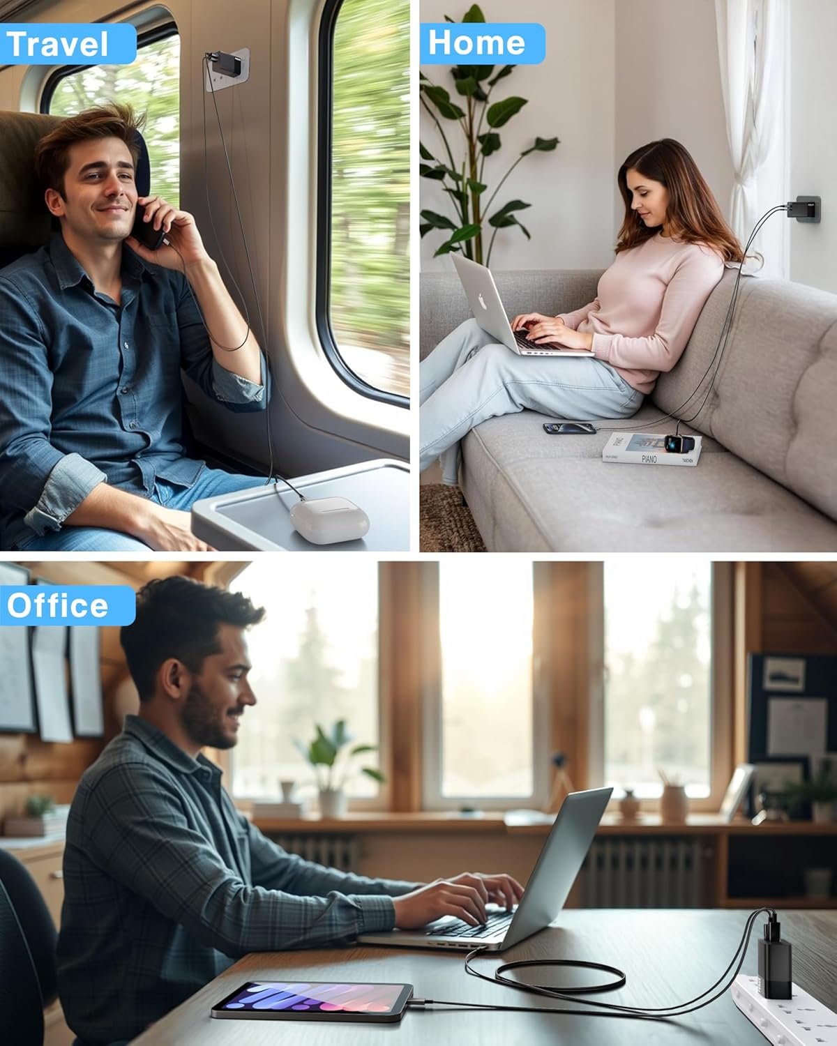 ▶VERSATILE CHARGING SOLUTION: Compatible with many devices, including tablets, laptops, portable monitors, and smartphones. With its wide compatibility, Stay powered up and connected effortlessly with this versatile charger, Support PD 3.0, QC 4/3.0/2.0, WARP, AFC, SCP, FCP, PPS USB C Fast charging protocols For HP, Acer, Samsung, Steam Deck, MacBook, MacBook Pro, MacBook Air, Laptop, phone, Switch, tablets, and 1000+ more Type C power devices(65W/ 61W/ 60W/45W/ 30W/ 29W/ 18W/ 15W etc)