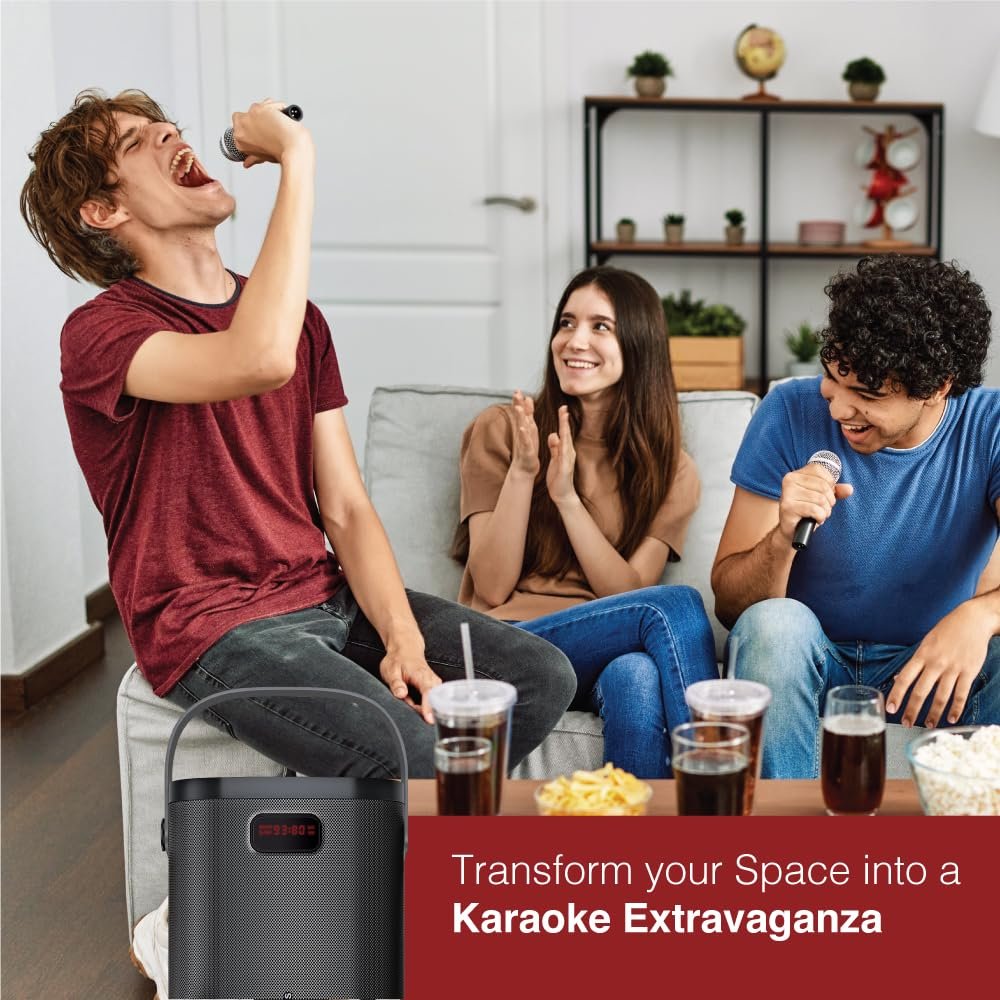 FINGERS 2Mic-GrooveBox Portable Speaker with 2 Wireless Mics (6.5-Hour Playback, 20 W Intense Bass, Recording Feature, Bluetooth | USB | MicroSD | FM Radio | AUX) Rich Black