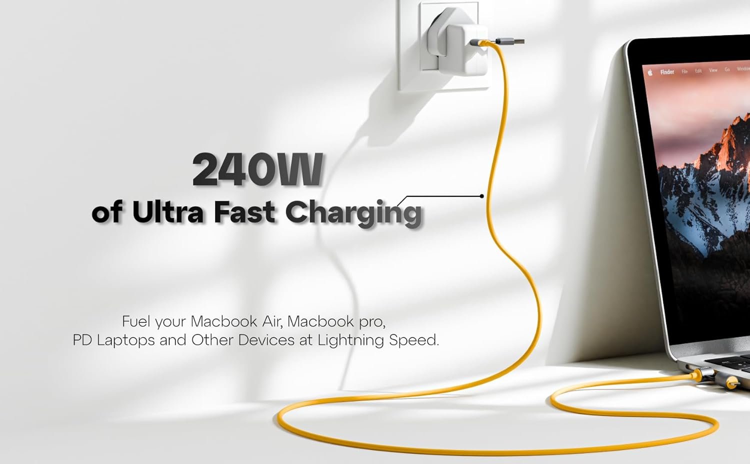 𝟐𝟒𝟎𝐖 𝐔𝐒𝐁-𝐂 𝐏𝐨𝐰𝐞𝐫 𝐃𝐞𝐥𝐢𝐯𝐞𝐫𝐲 — This 240w type c cable supports USB-C Power Delivery with up to 240 watts for charging laptops, gaming consoles, and large tablets. Users avoid slow charging when working remotely or gaming. Professionals charge MacBooks, high-end tablets, or USB-C monitors quickly. Students power laptops between classes without waiting. The cable handles high-energy transfer without overheating, making it reliable for heavy workloads or entertainment setups where speed matters most.