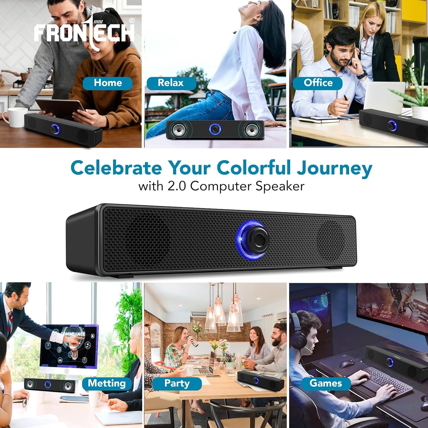 Enhance your audio experience with the FRONTECH 1.0 USB Powered Multimedia Speakers, designed for versatility and performance. These compact yet powerful speakers feature 10W output power, making them perfect for use with laptops, PCs, and mobile devices. With both AUX and USB connectivity, you can easily connect to a variety of devices, while the 3.5mm audio input ensures compatibility across different platforms. The integrated RGB lights add a dynamic visual element, enhancing your gaming, music, or movie experience. Powered by USB with a low power input requirement of 5V 1A, these speakers offer high-quality sound with a frequency response of 120Hz-20KHz and a noise ratio of 275dB, ensuring clear and crisp audio output.