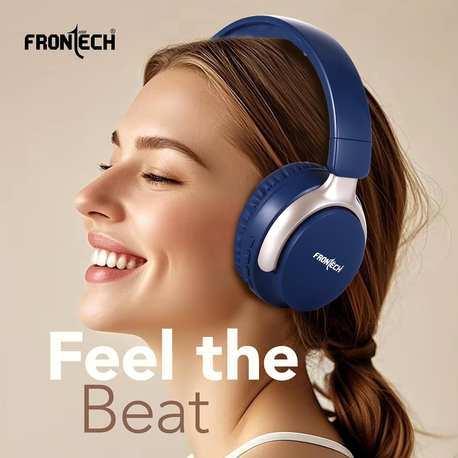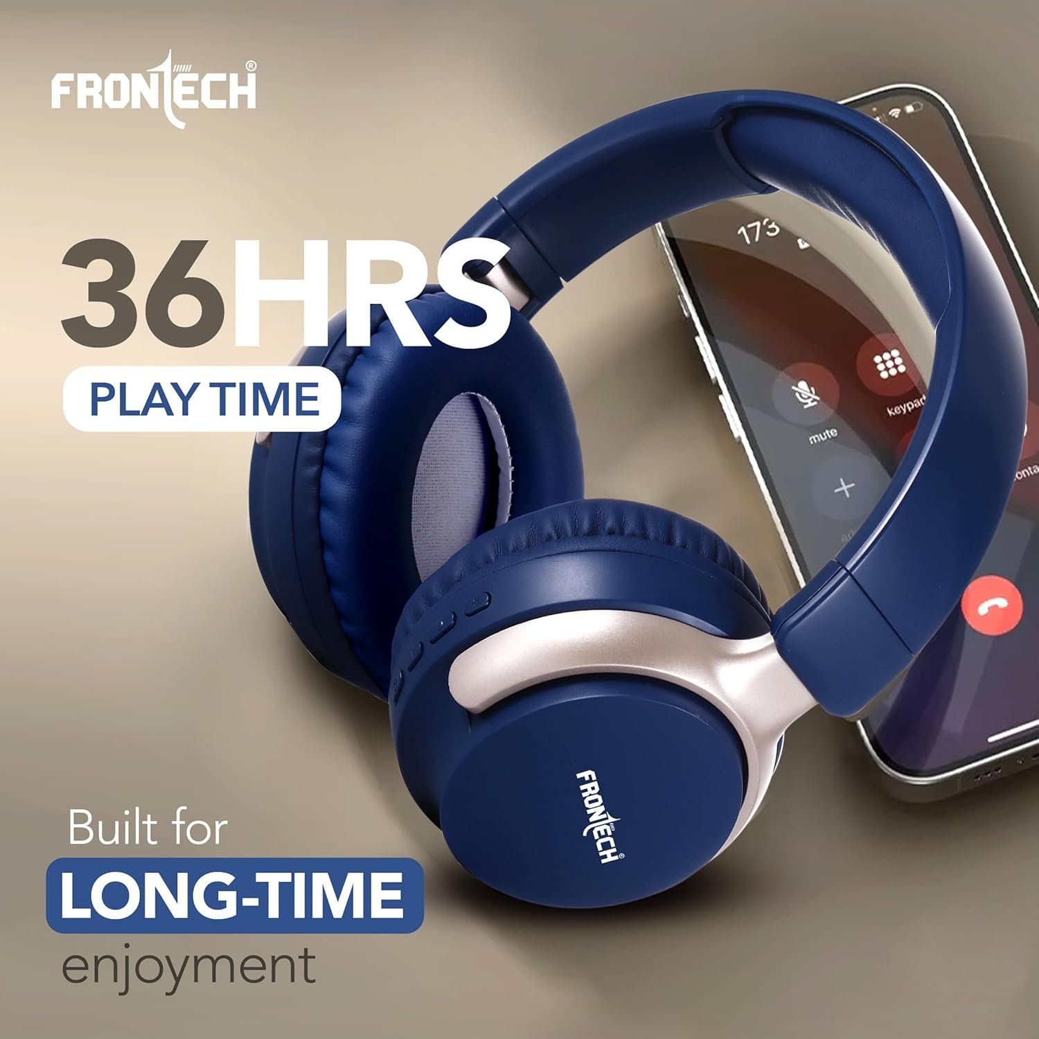 FRONTECH Aqua EF-0078 Wireless Bluetooth Headphones Over-Ear with 36 Hrs Playtime, 200 Hrs Standby, Deep Bass, Built-in Mic for Calls, 40mm Drivers, Ergonomic Design – Ideal for Music, Gaming & Work