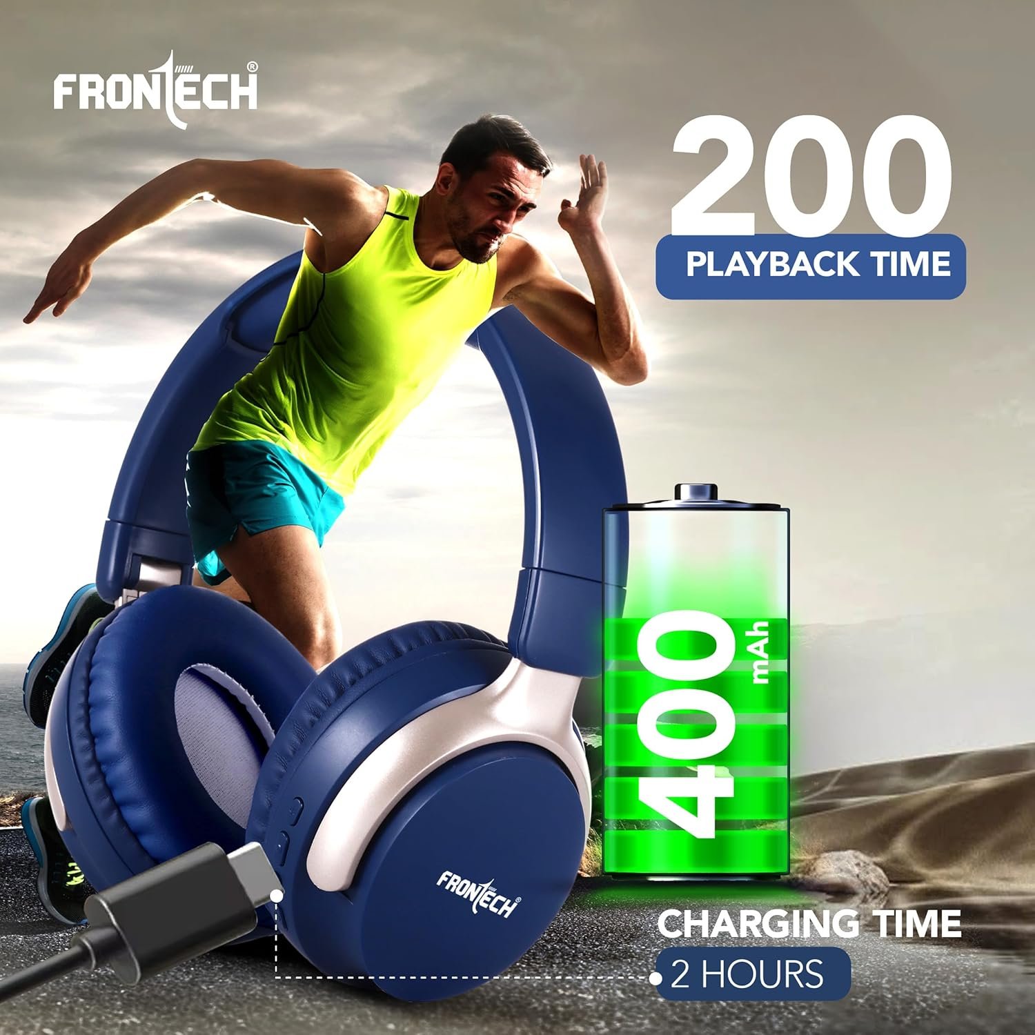 The FRONTECH Aqua Wireless Headphones offer a rich audio experience with their 40mm drivers and a frequency response of 20Hz-18KHz. Designed for comfort and long-time enjoyment, these headphones provide up to 36 hours of playtime on a single charge, with a quick 2-hour charging time for its 400mAh battery. They feature dual-use capability, supporting both wireless (Bluetooth 5.1+BR+EDR with a 10-meter range) and wired connections via an AUX interface, and charge conveniently with a Type-C port. Easy-to-control buttons allow for simple management of power, volume, track skipping, and calls, making them ideal for various activities, from relaxing at home to working out.