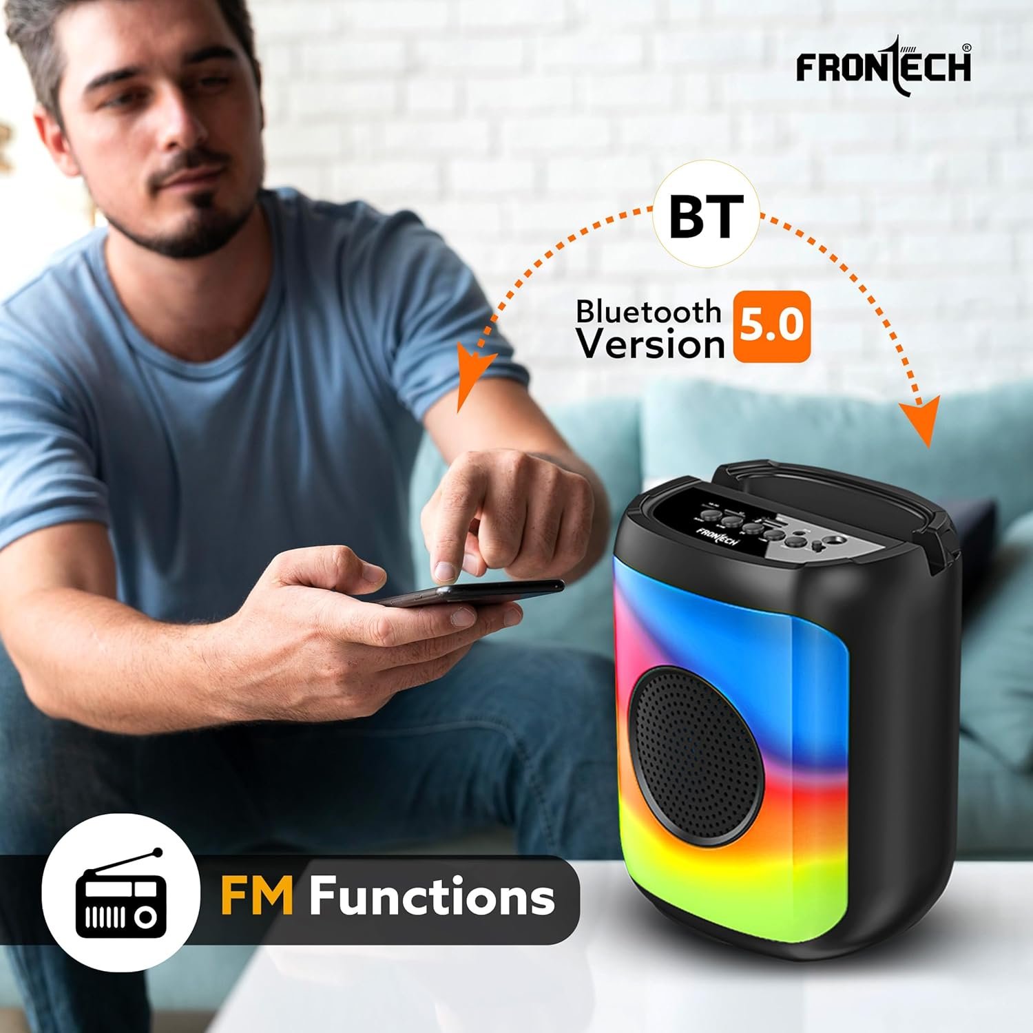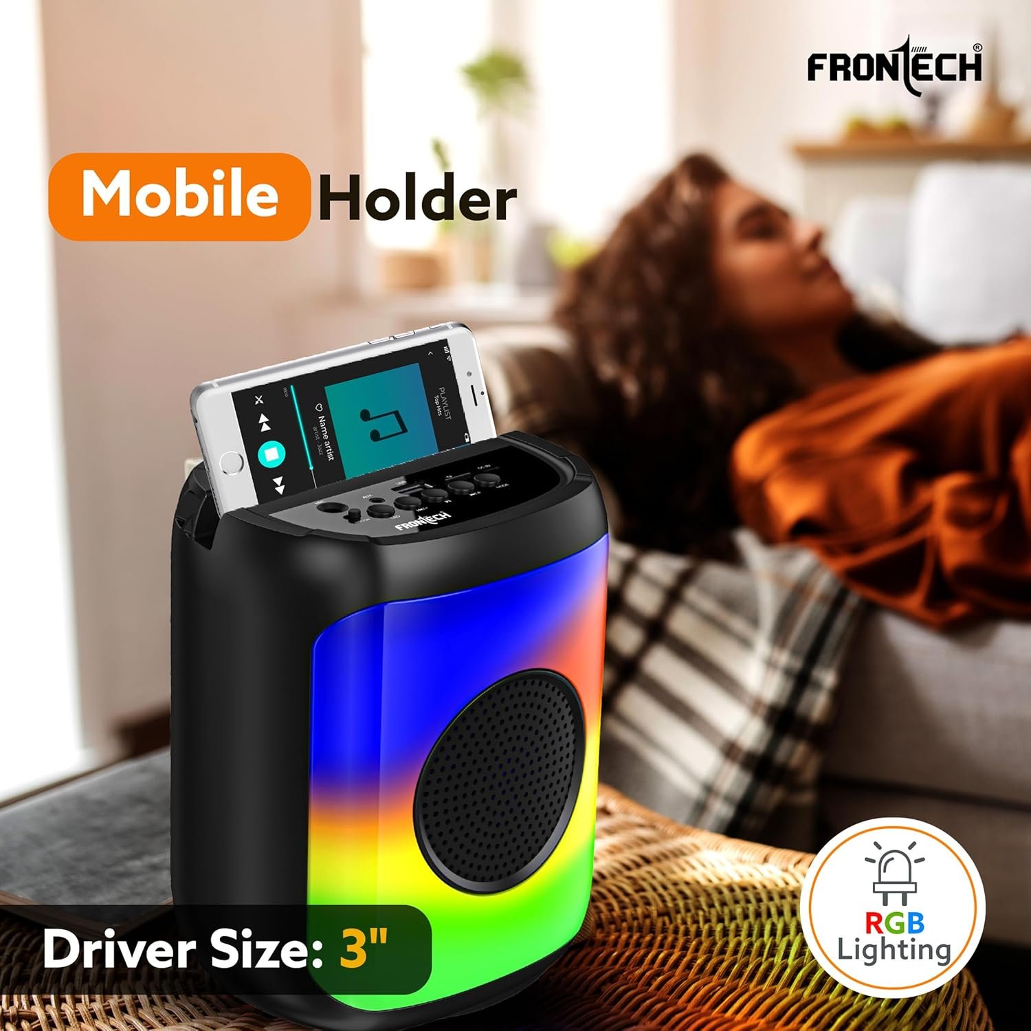 FRONTECH True Wireless 5 Watt Output Multimedia Speaker with Bluetooth 5.0 and Mystic RGB Lighting with 800 mAh Battery, Mobile Holder and Karaoke (SW-0219)