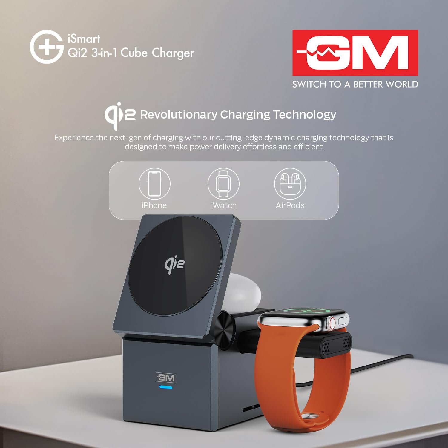 Perfect 3-in-1 Charging SolutionI’ve been using the GM G+ iSmart Qi2 charger and it’s been an excellent experience. It charges my iPhone, Apple Watch, and AirPods all at once, which makes things super convenient. The magnetic hold is strong, charging is fast, and the 180° rotation makes it easy to adjust for the perfect angle.Stylish, practical, and very reliable — I highly recommend it!