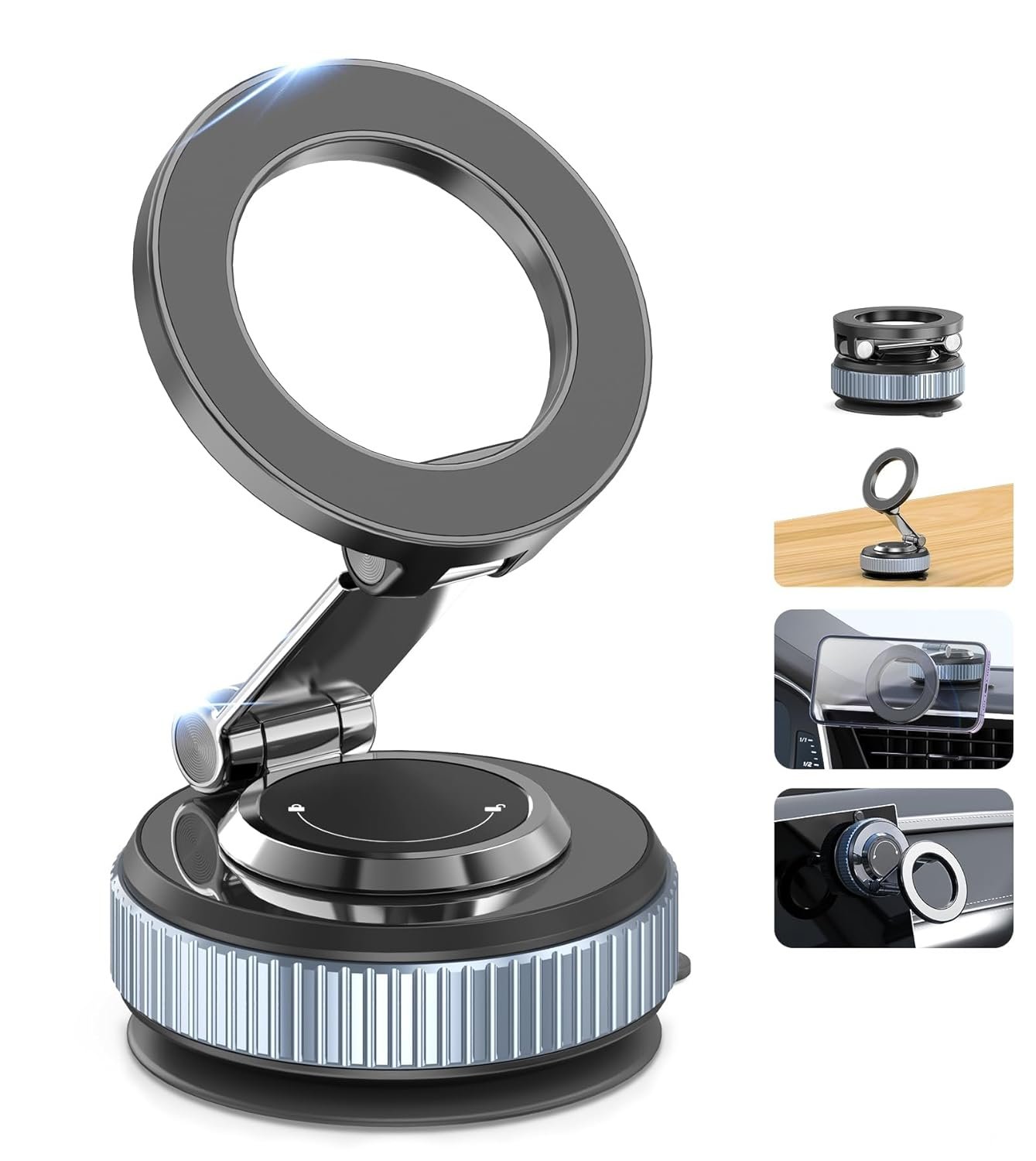 Gahenwo Vacuum Magnetic Car Phone Holder Stand, 360° Adjustable, Foldable for Magsafe & Android