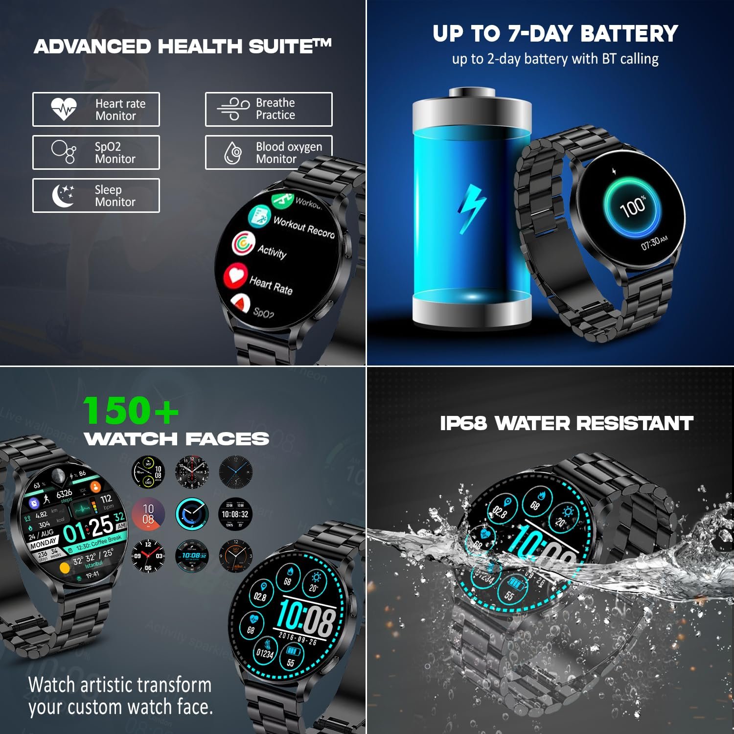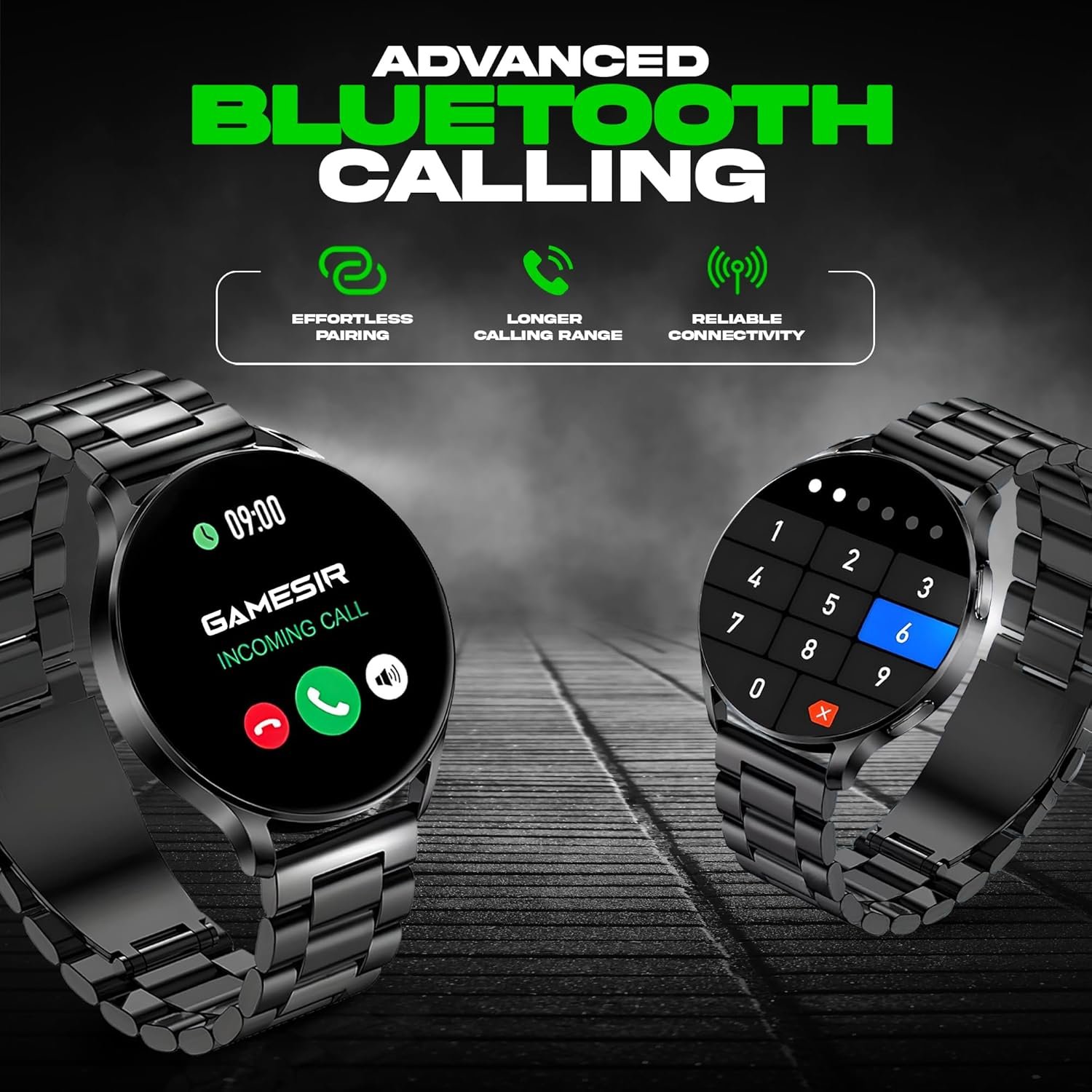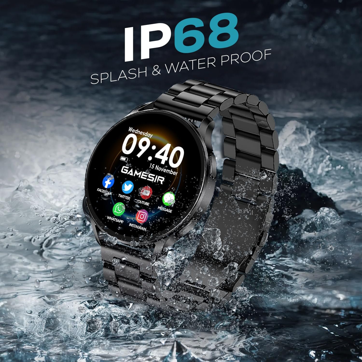 GameSir Active 5 Smart Watch AMOLED Display 1.3″ Screen, 360 * 360 Resolution, IP68 Waterproof with Multiple Watch Faces Bluetooth Calling Round Dial Smartwatch for Men & Women (Metal-Black)