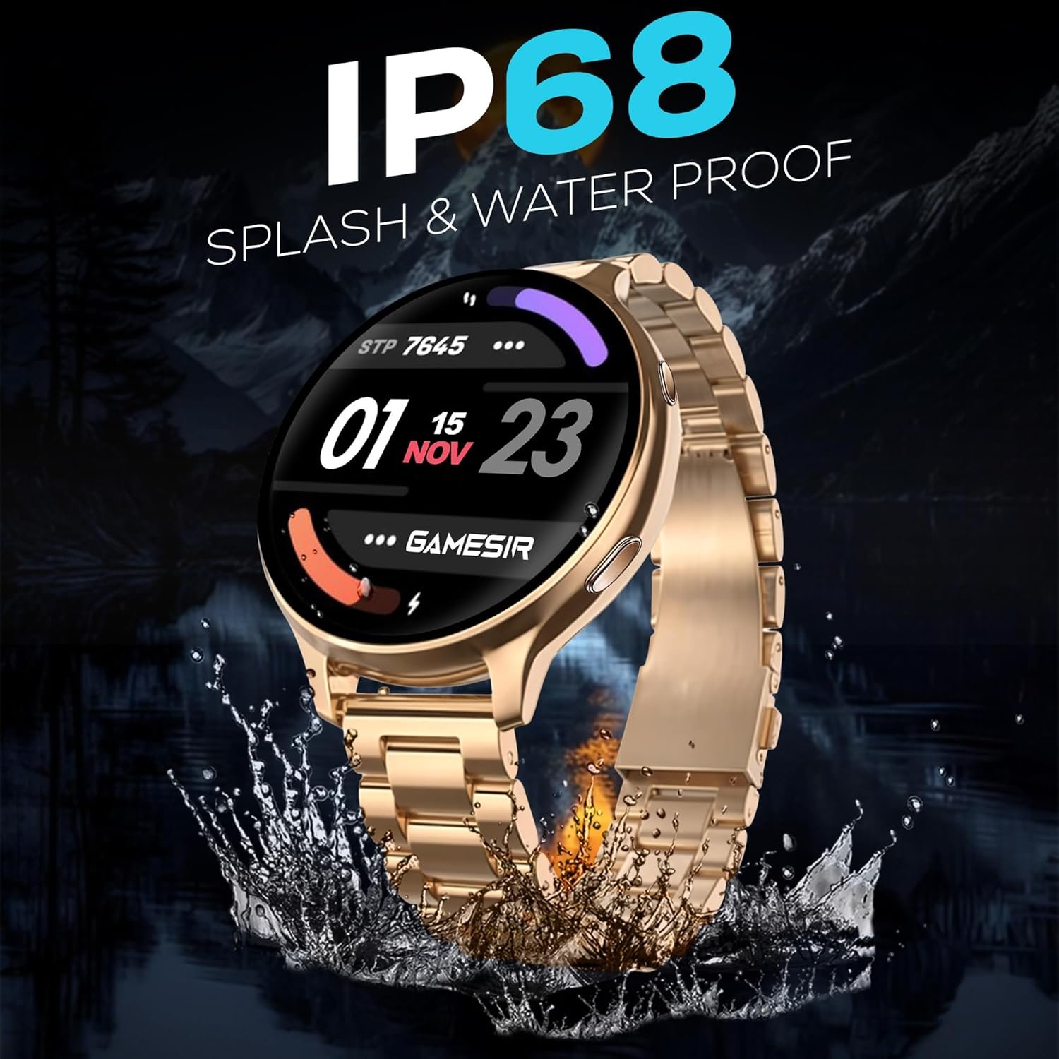 GameSir Evo Vista Premium Smartwatch 1.39″ Round Display with Stainless Metal Strep, Bluetooth Calling & Health Monitoring, Multi Sports Modes, Voice Assistant, Waterproof for Men’s & Women’s (Gold)