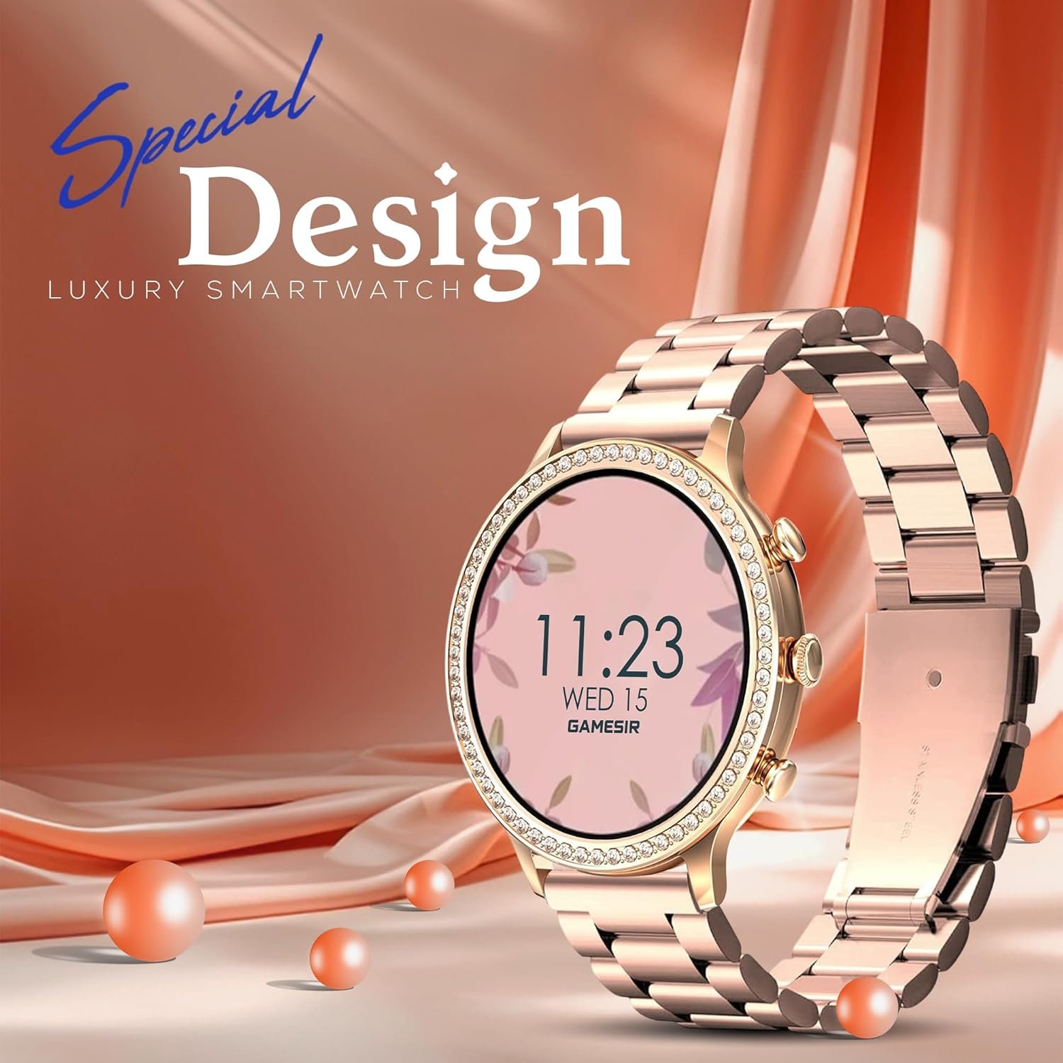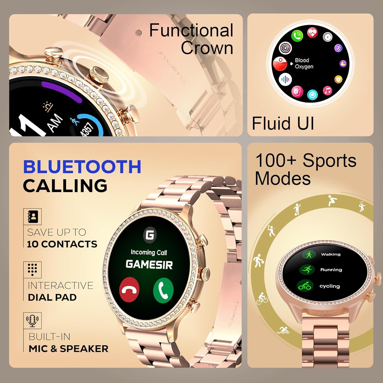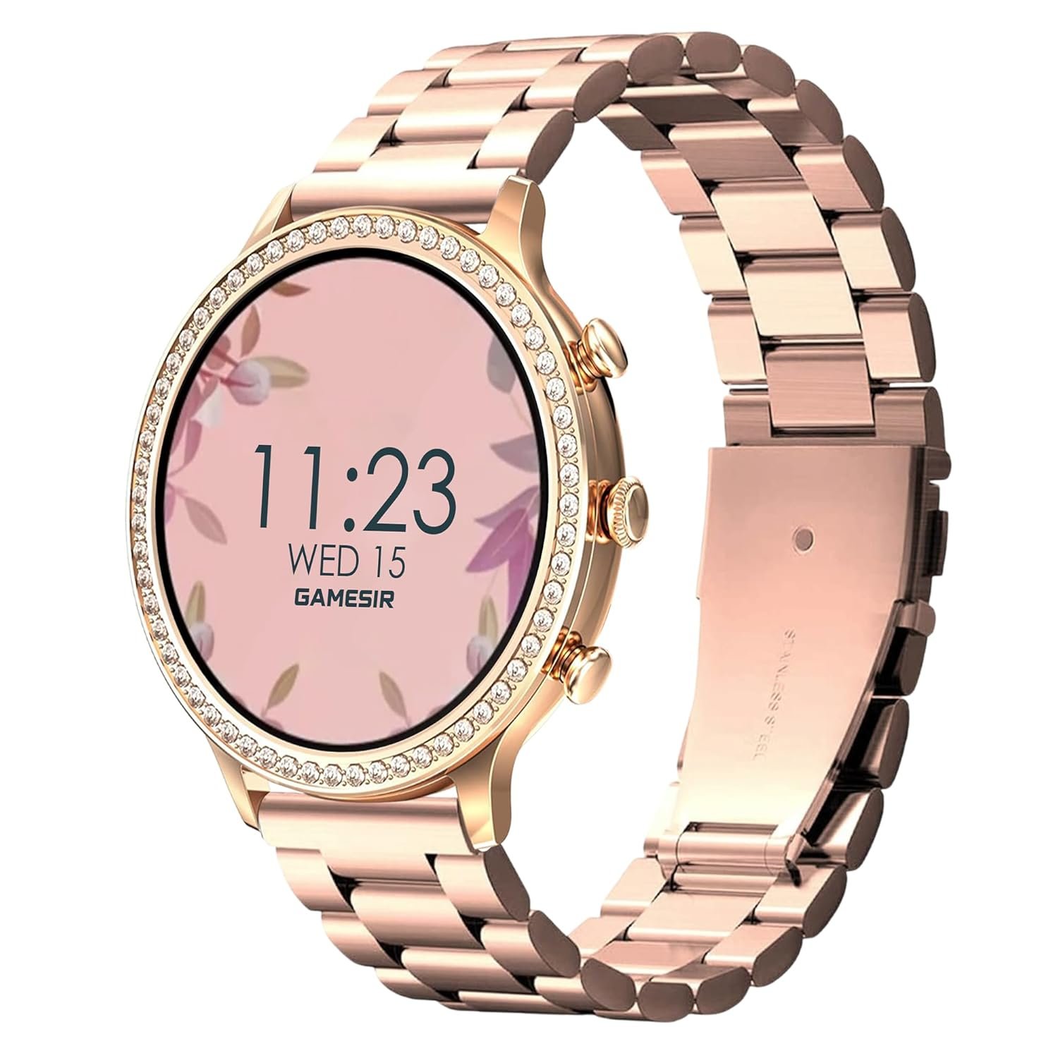 GameSir GenDiva Smartwatch for Women with Bluetooth Calling, 1.69” AMOLED Display, 100+ Sports Modes, Health & Sleep Monitor, Voice Assistant, IP68 Waterproof, Long Battery Life, (Rosegold)