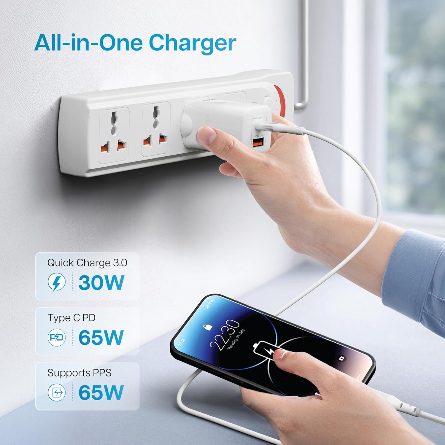 GaN Efficiency: Experience cutting-edge efficiency with our 65W GaN charger, perfect for powering your devices. Its GaN technology ensures a fast, efficient charge for USB C and mobile devices, making it the ultimate charger for technology enthusiasts.