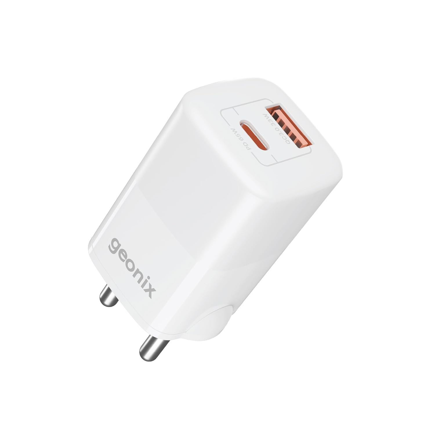Geonix Atomic G65, Gan Charger, 65W GaN Charger | Dual Port USB & Type-C Fast Charging Adapter for iPhone 16–11 Series, iPad, Android, Laptop, Tablet, Power Bank (White)