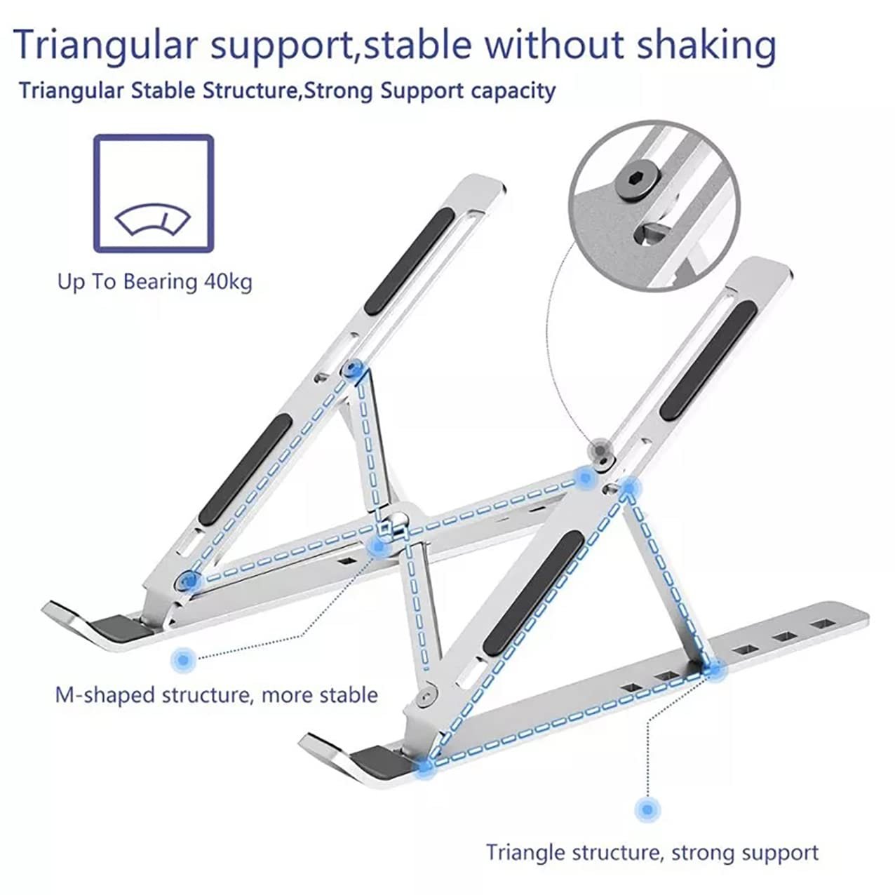 Anti-Slip Features: Non-slip rubber or silicone pads to keep your device in place. It prevents sliding and scratches on your laptop or tablet.