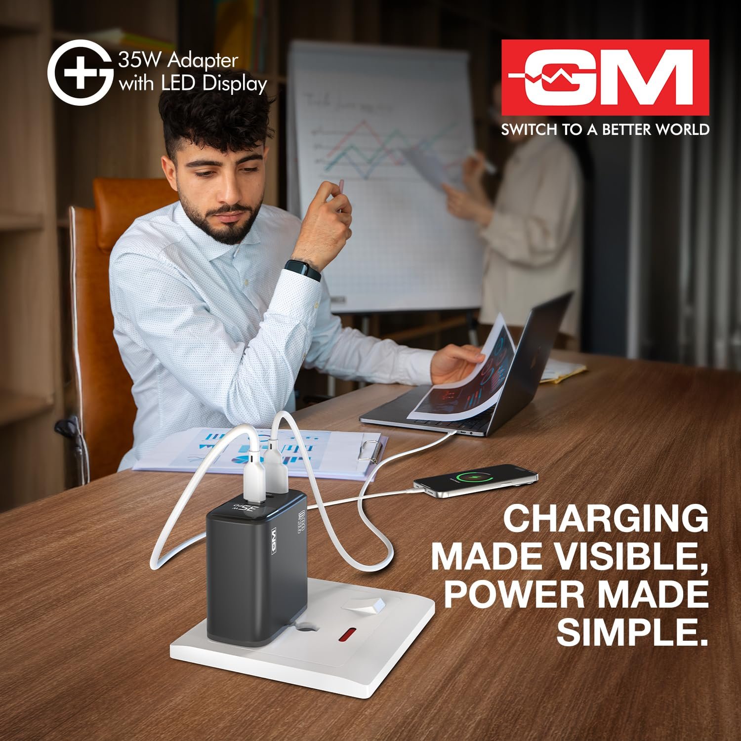 GM G+ 35W Fast Charger Adapter with LED Display | Universal USB-C Wall Charger | Compact Travel Adapter with Smart Protection | High-Speed Charging for Phones, Tablets & Earbuds