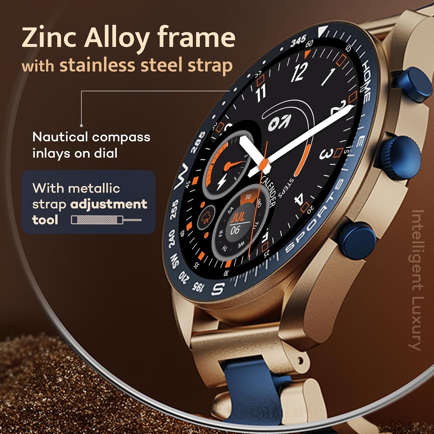 GOBOULT Mirage Smart Watch 1.39”HD Screen, Bluetooth Calling, IP67, Zinc Alloy Frame, 500 Nits Brightness, AI Voice Assistant, SpO2 Monitoring, 120+ Sports Mode (Amber Blue)