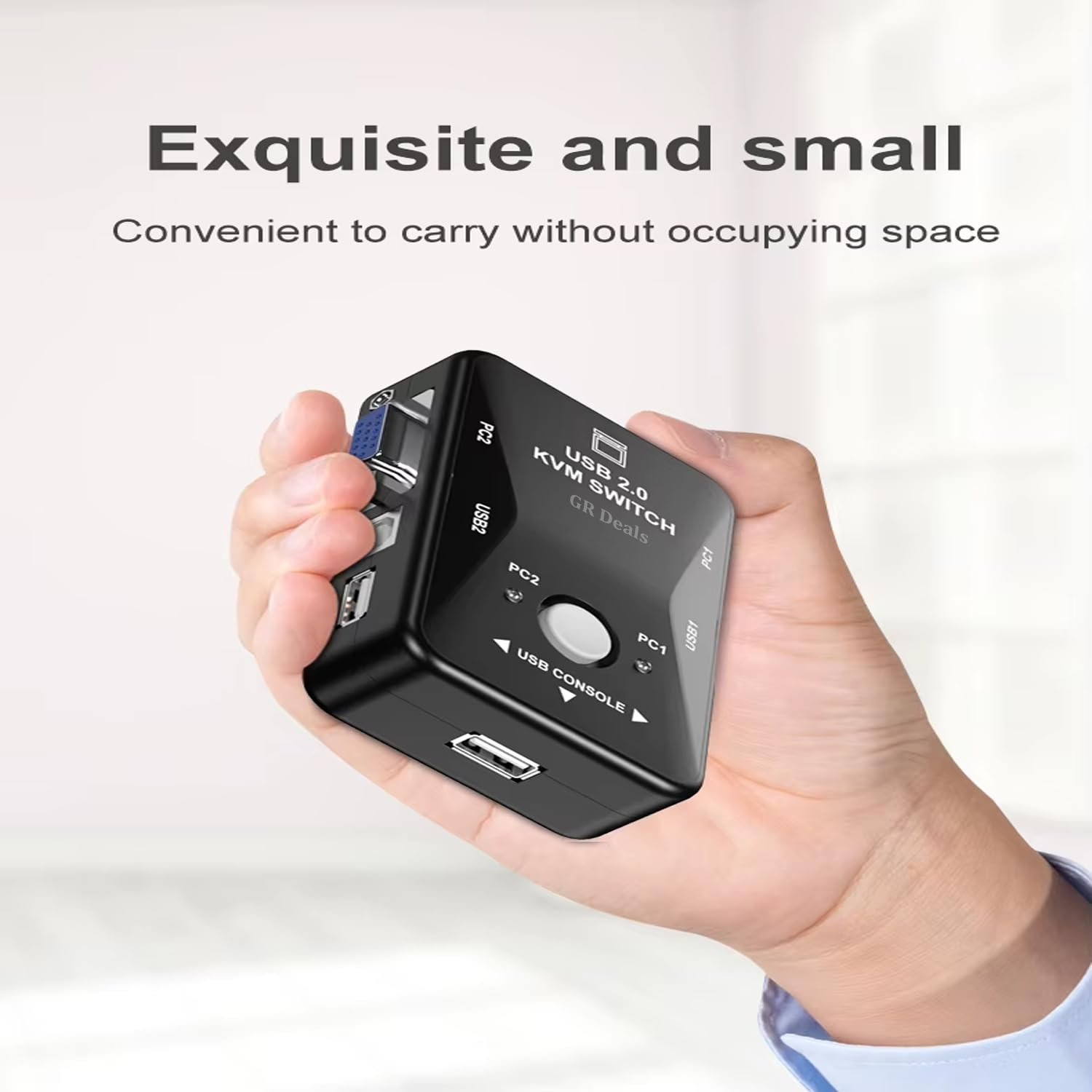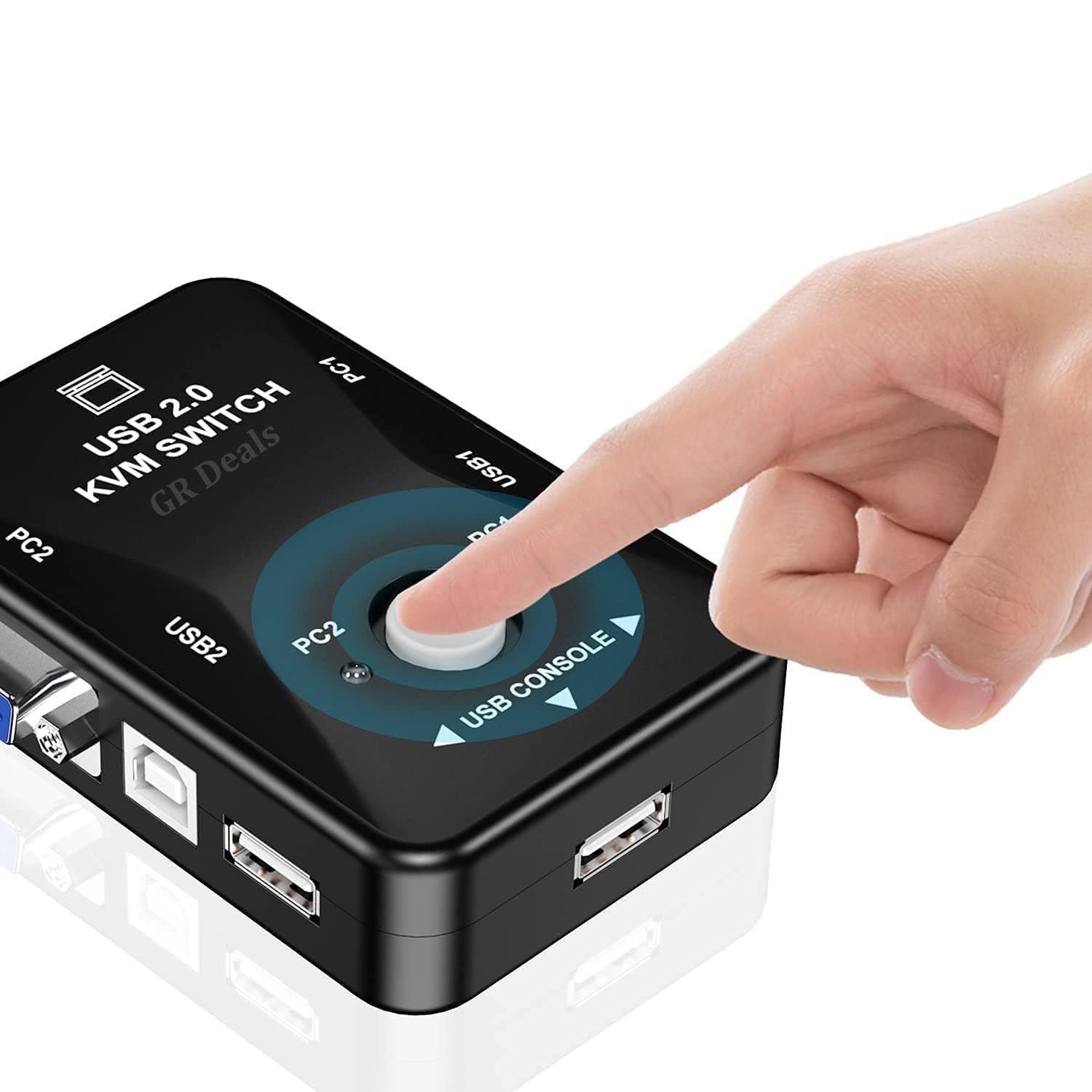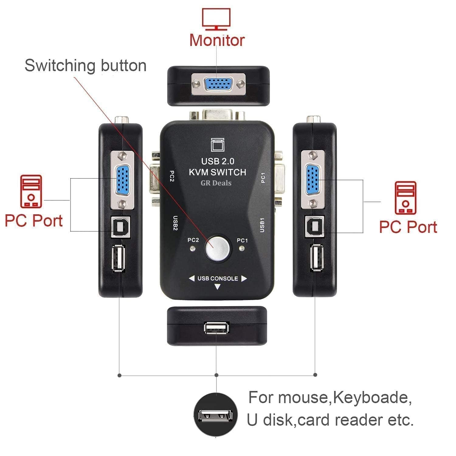 GR Deals 2 Port KVM Switch USB 2.0 KVM Switch Box to Control up to 2 Computers 2 in 1 Out USB Keyboard Mouse Sharing Device for Computer, PC, Laptop, Desktop, Monitor, Printer, Sharing Video. BLACK.