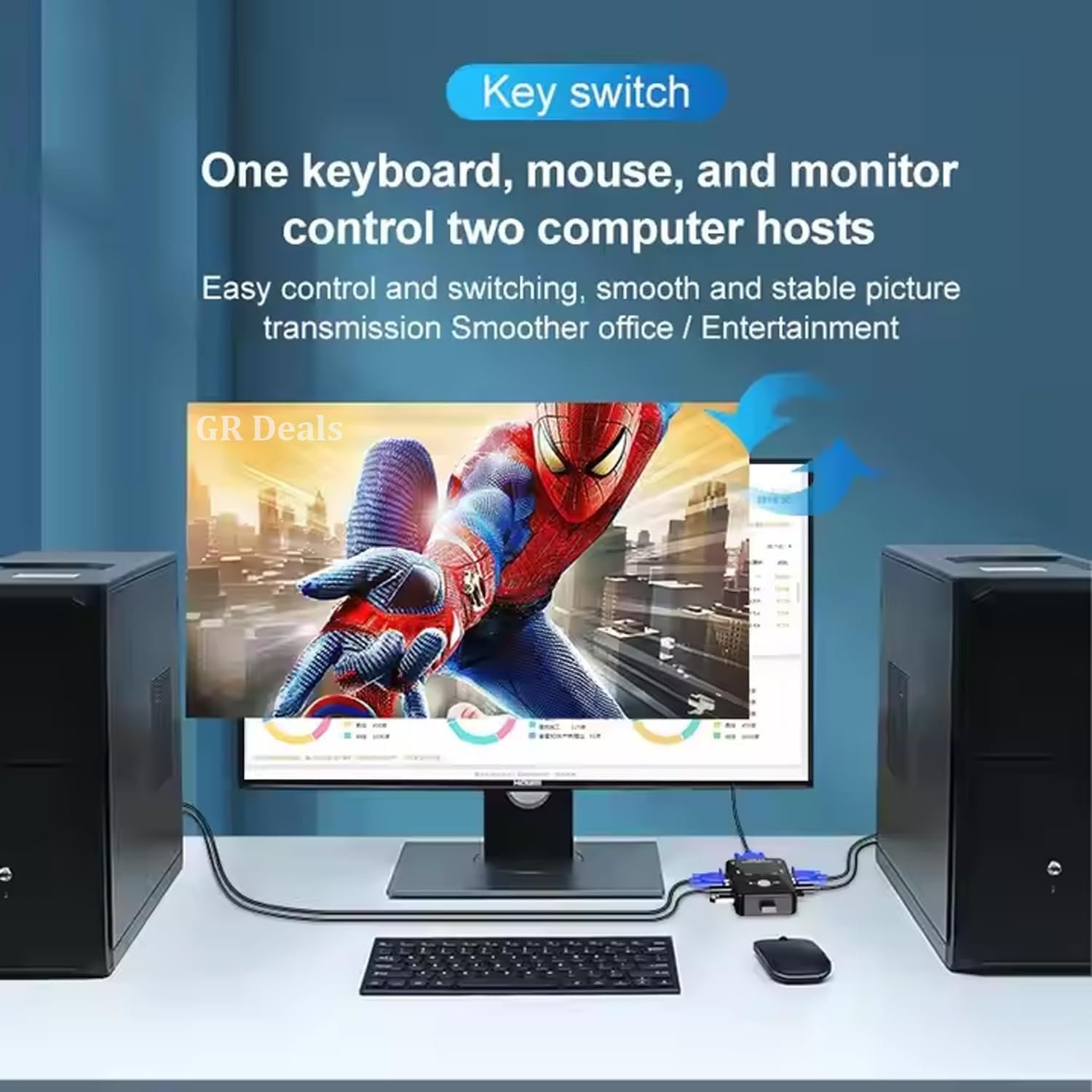 The GR Deals KVM switches can operate more than one host server through a set of monitor, keyboard, mouse, thus saving the monitor,keyboard, mouse, and other equipment, but also saves valuable space, without having to run again after the former ran into each machine up operation of
