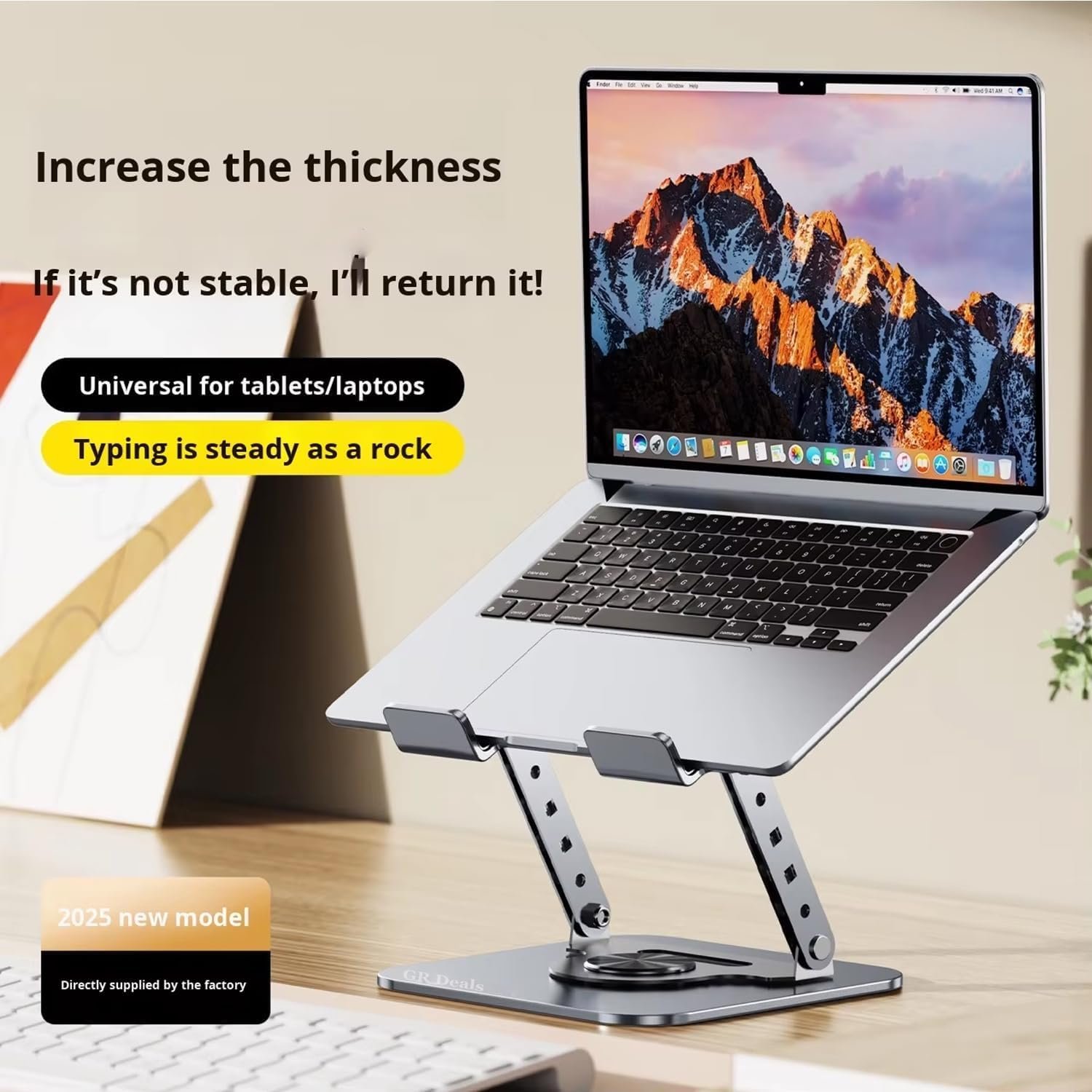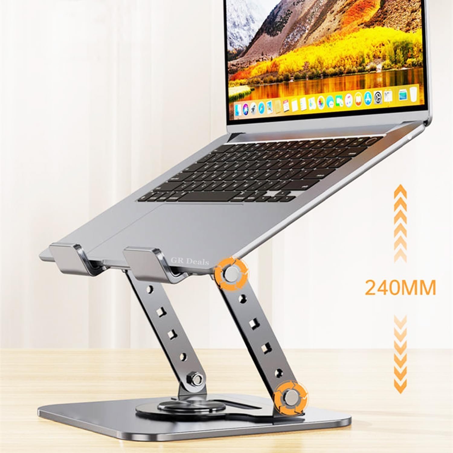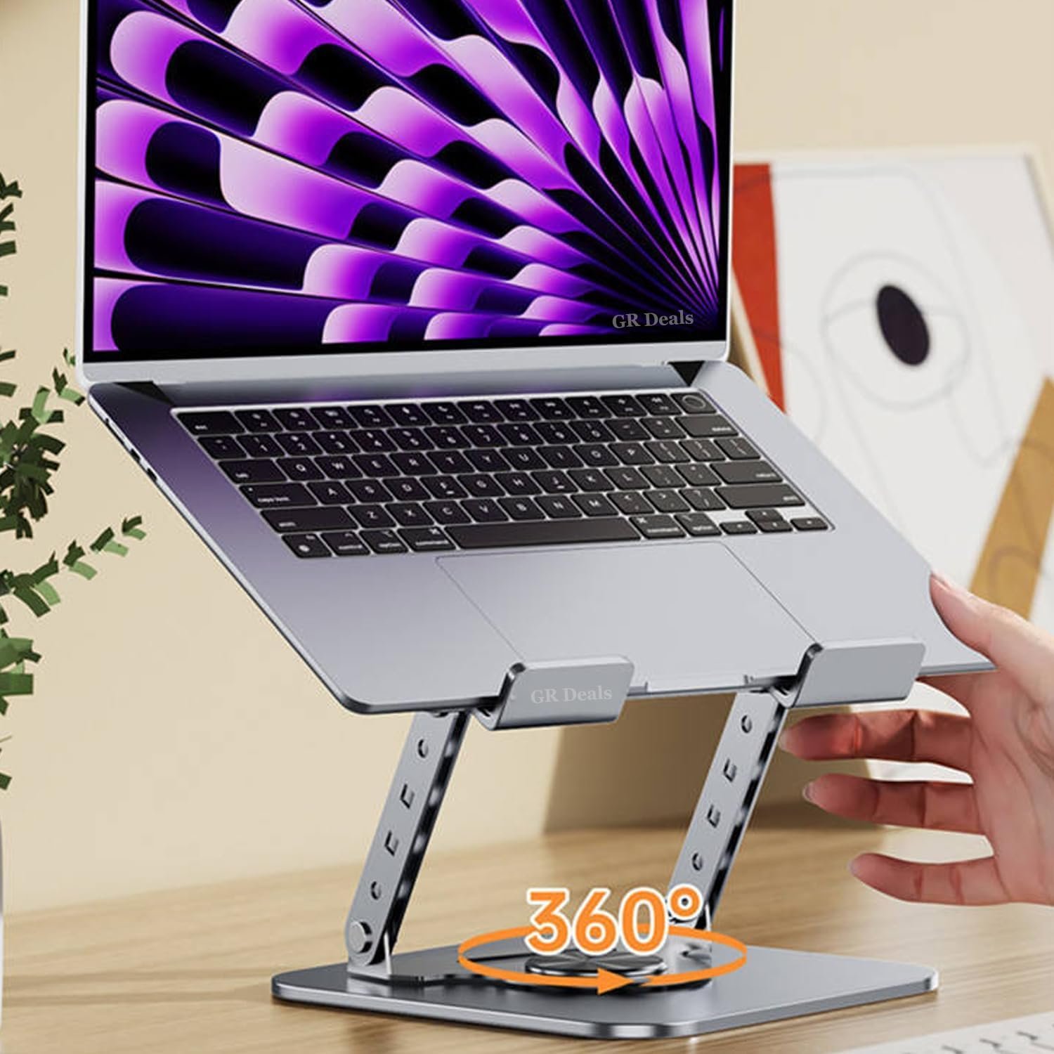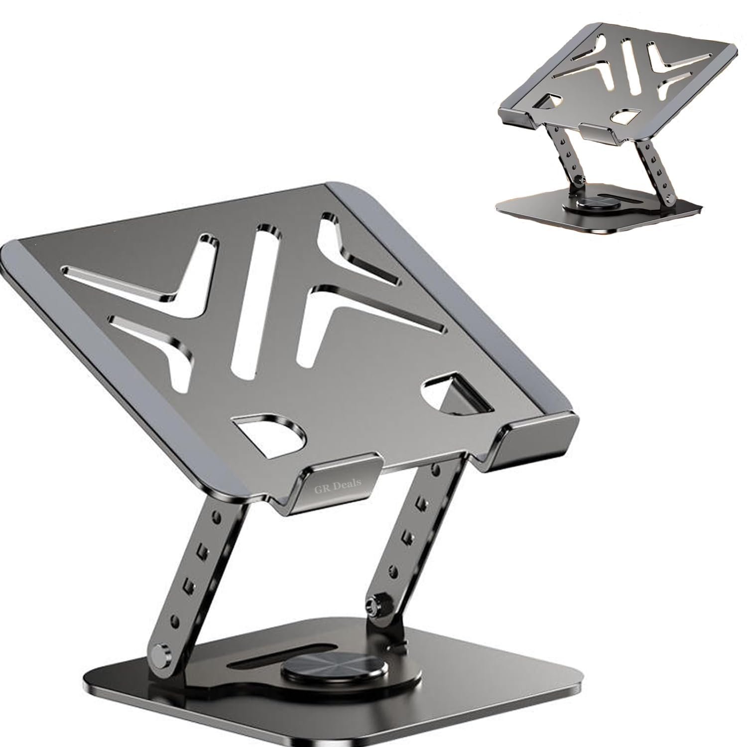 GR Deals 360° Rotating 17″ Metal Laptop & Tablet Stand – Adjustable Height, Heat Dissipating Folding Desktop Mount – Portable 2-in-1 Design. (SG-19) (Multicolor)
