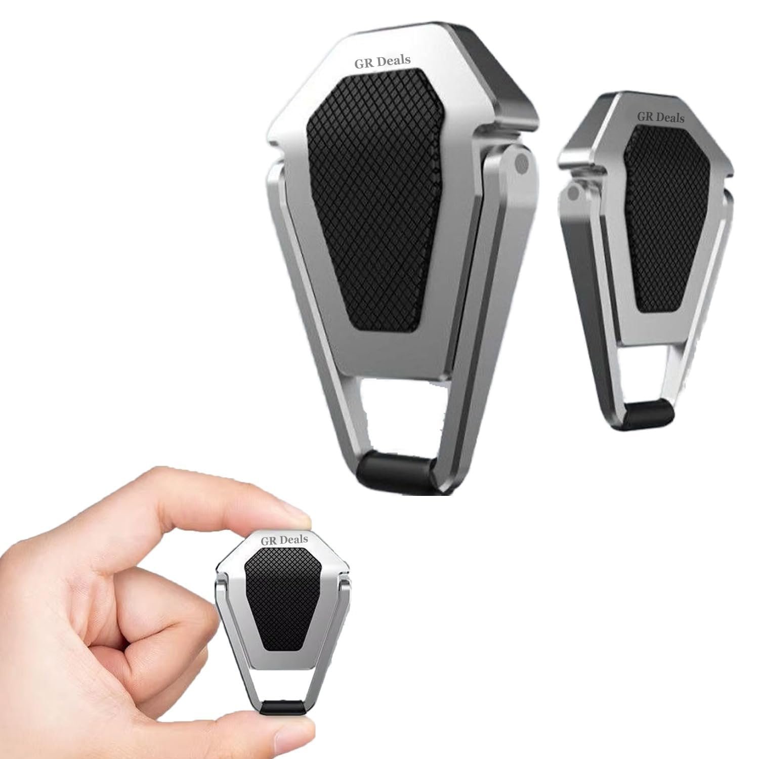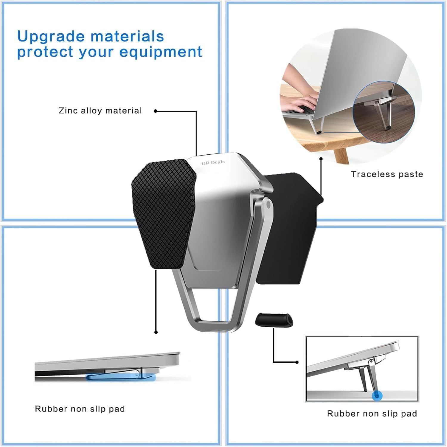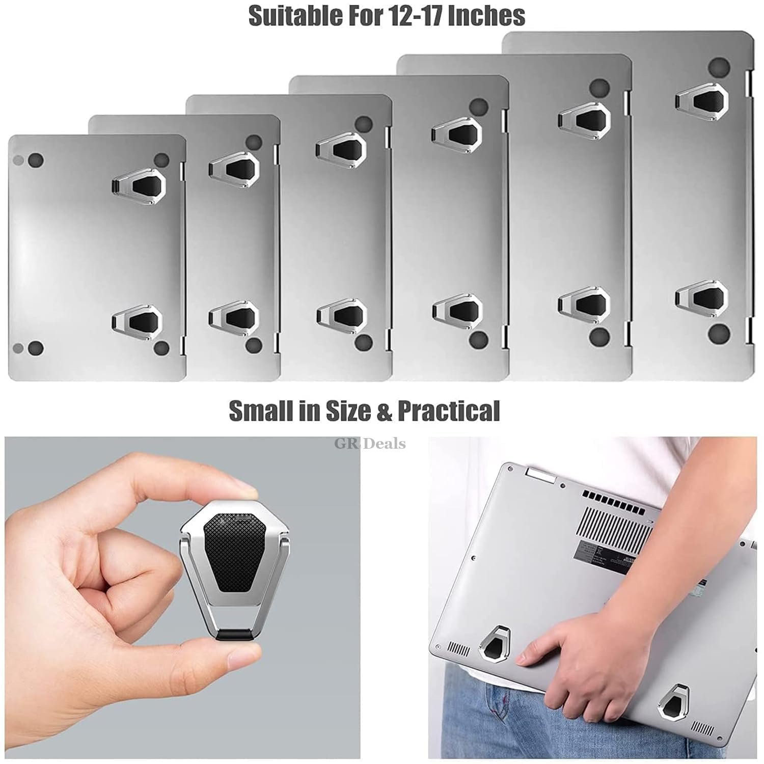 GR Deals Mini Laptop Stand for Desk, Portable Folding Aluminum Laptop Risers, Invisible Adhesive Tablet Stand for 10-17 Inch Notebooks, Anti-Slip Ergonomic Cooling Feet (Silver)