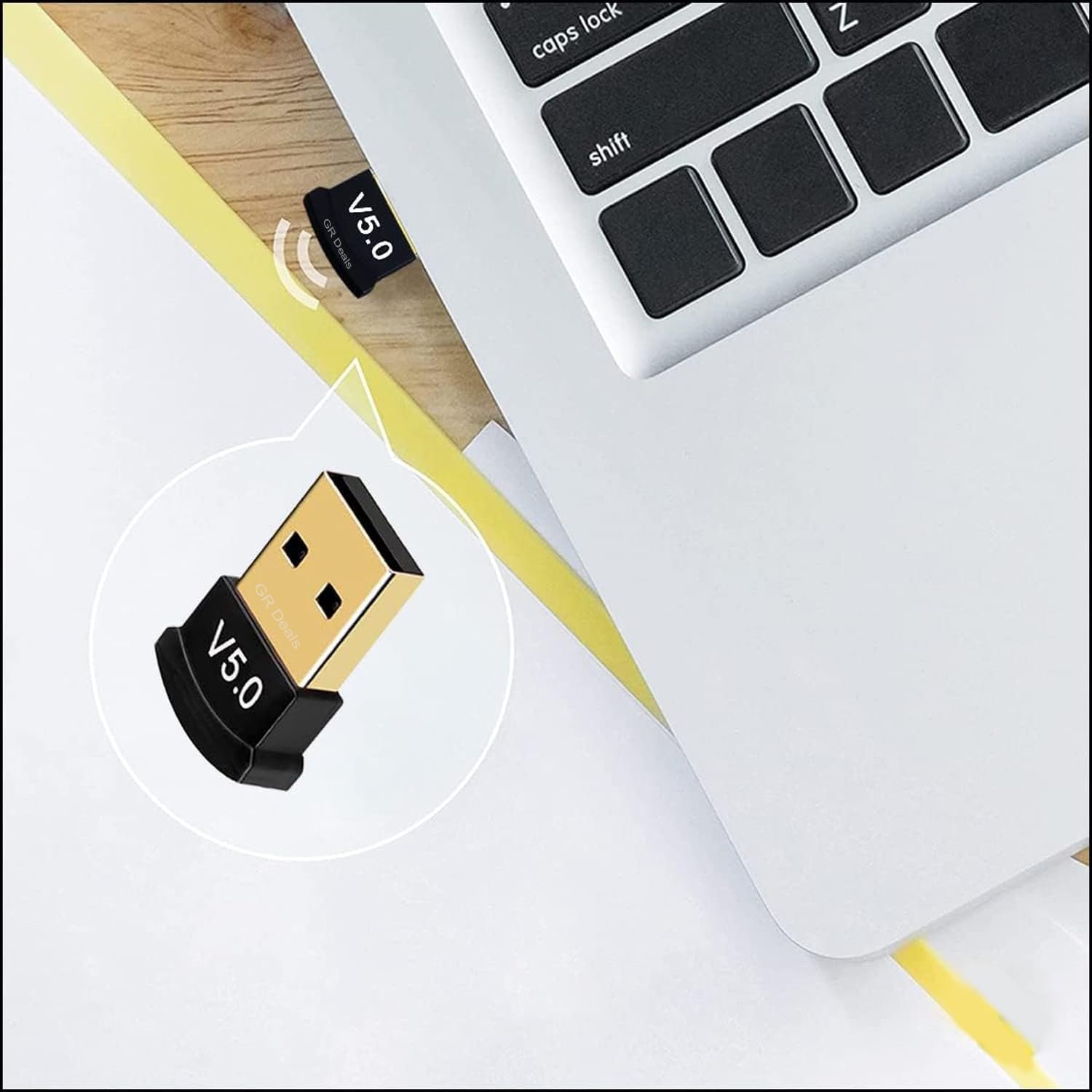 GR Deals USB Bluetooth Adapter for PC, 5.0 Bluetooth Dongle Receiver (UB500) Supports Windows 11/10/8.1/7 for Desktop, Laptop, Mouse, Keyboard, Printers, Headsets and Speakers